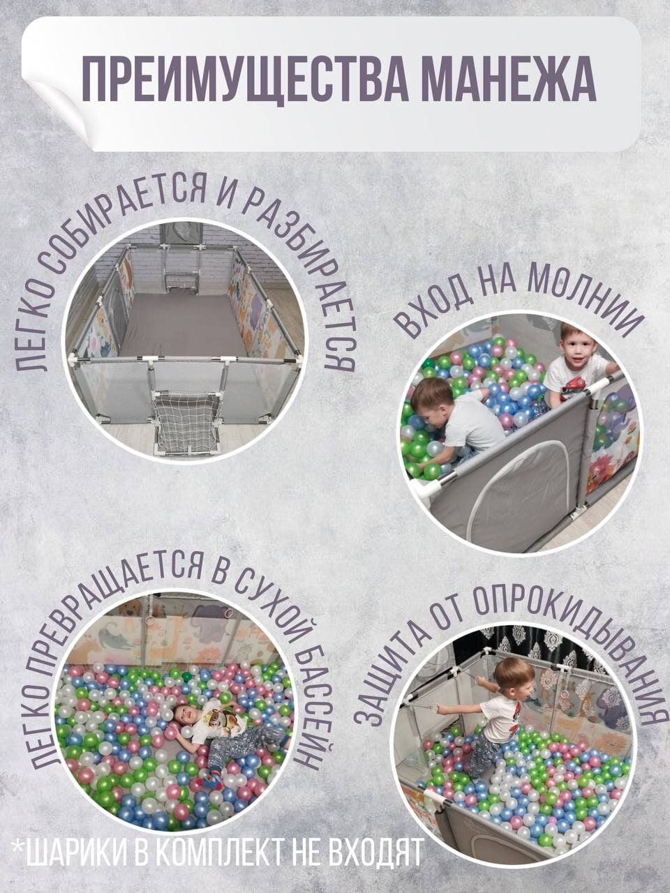 Ниже Вы можете прочитать отзывы на Манеж детский напольный игровой большой прямоугольный серый с рисунком и с баскетбольным кольцом и футбольными воротами, ознакомится с подробными характеристиками, посмотреть интересные обзоры и фотографии на Манеж детский напольный игровой большой прямоугольный серый с рисунком и с баскетбольным кольцом и футбольными воротами.