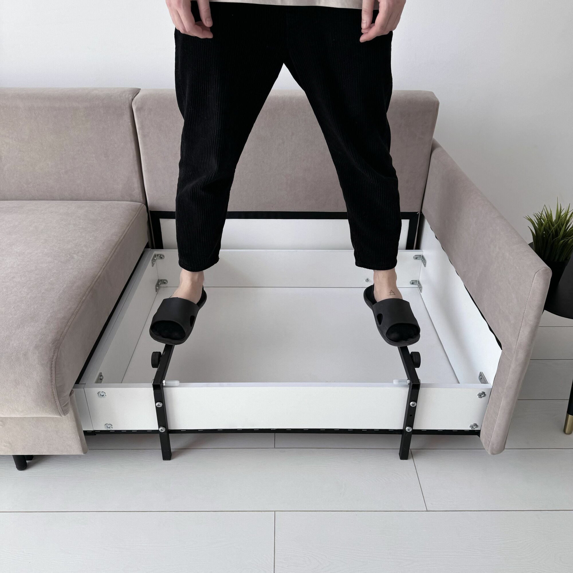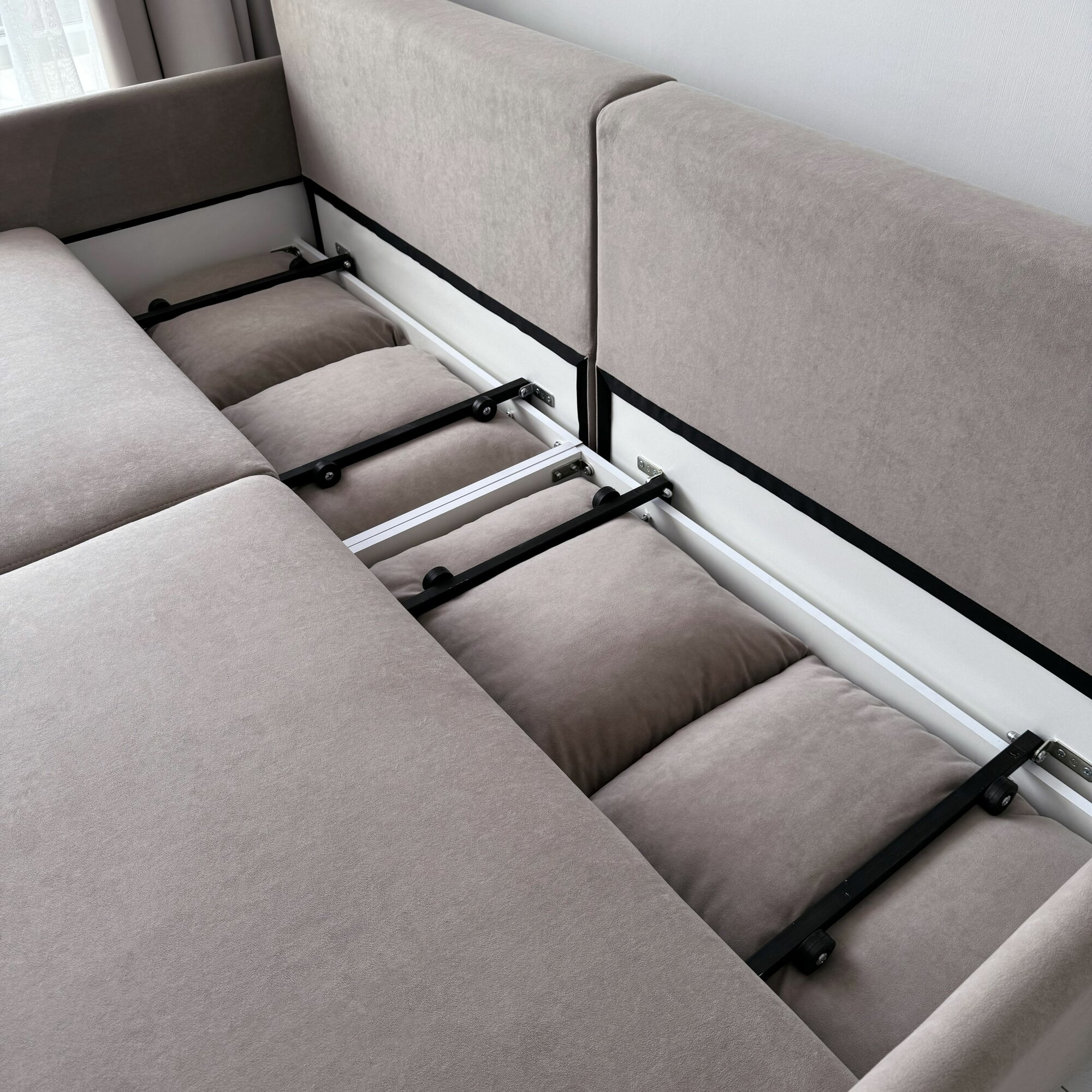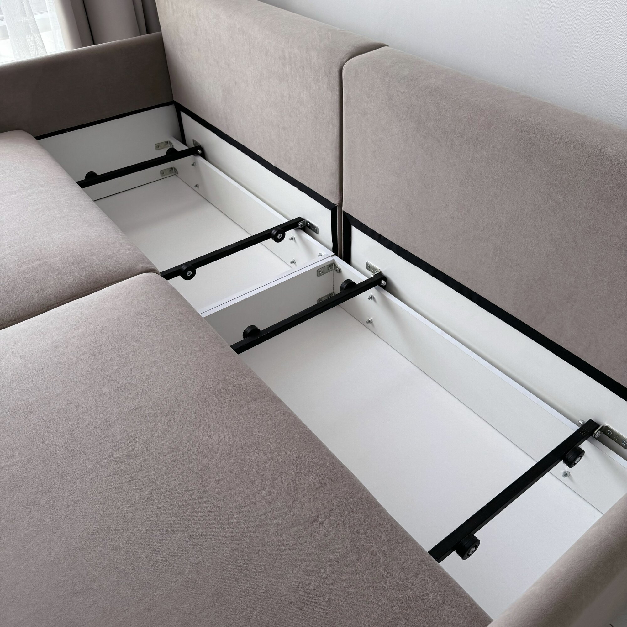 | Особенности | модульный, пружинный блок, раскладная конструкция, с подлокотниками, съемный чехол, ящик для белья |