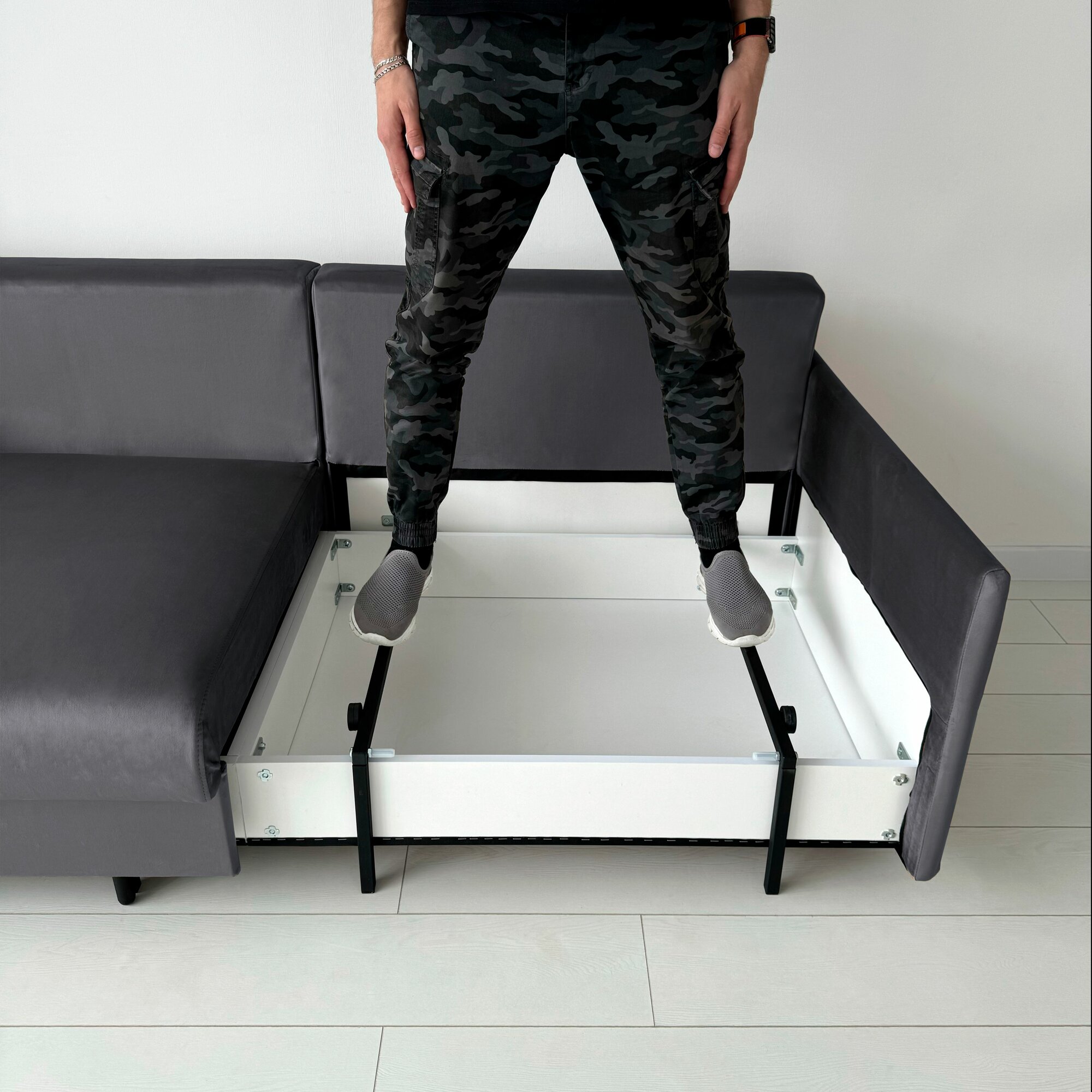 | Особенности | модульный, пружинный блок, раскладная конструкция, с подлокотниками, съемный чехол, ящик для белья |