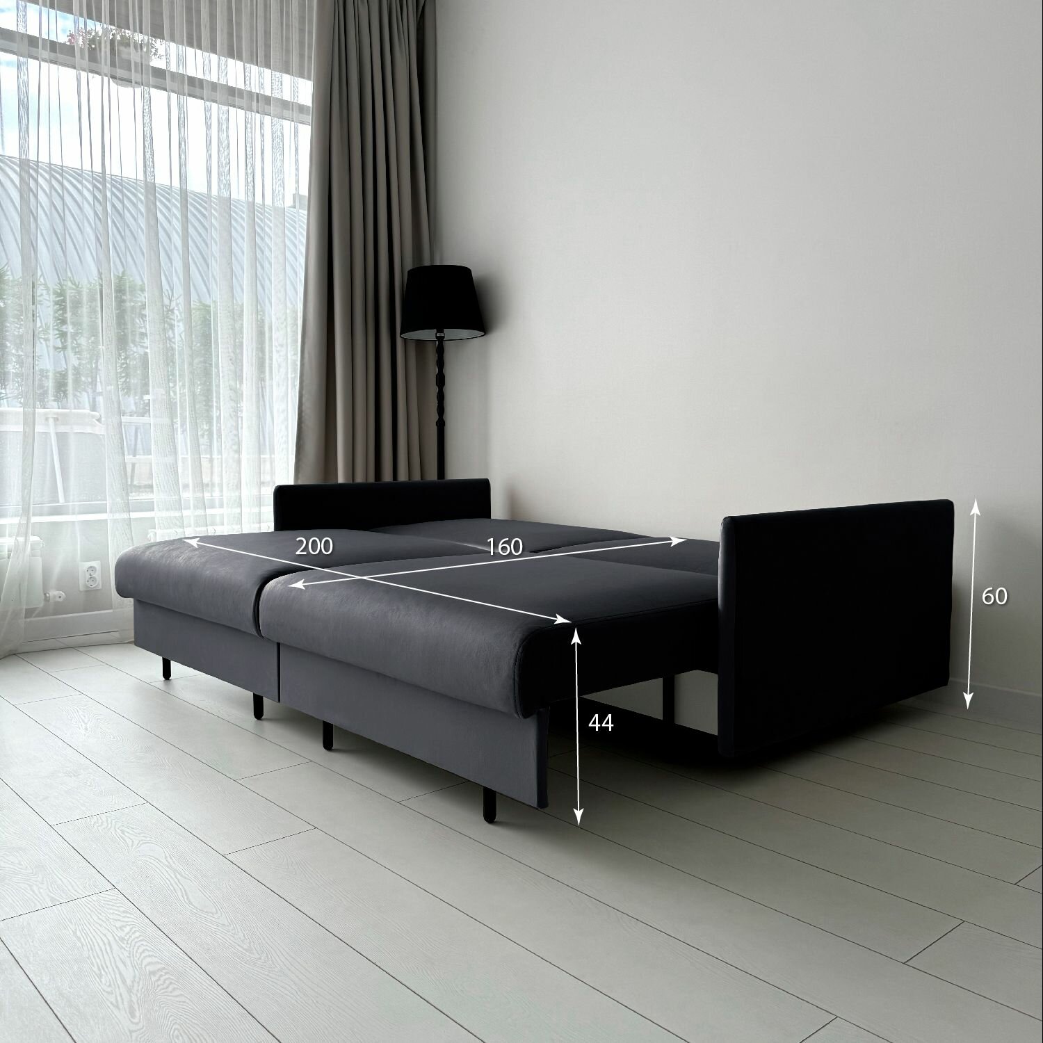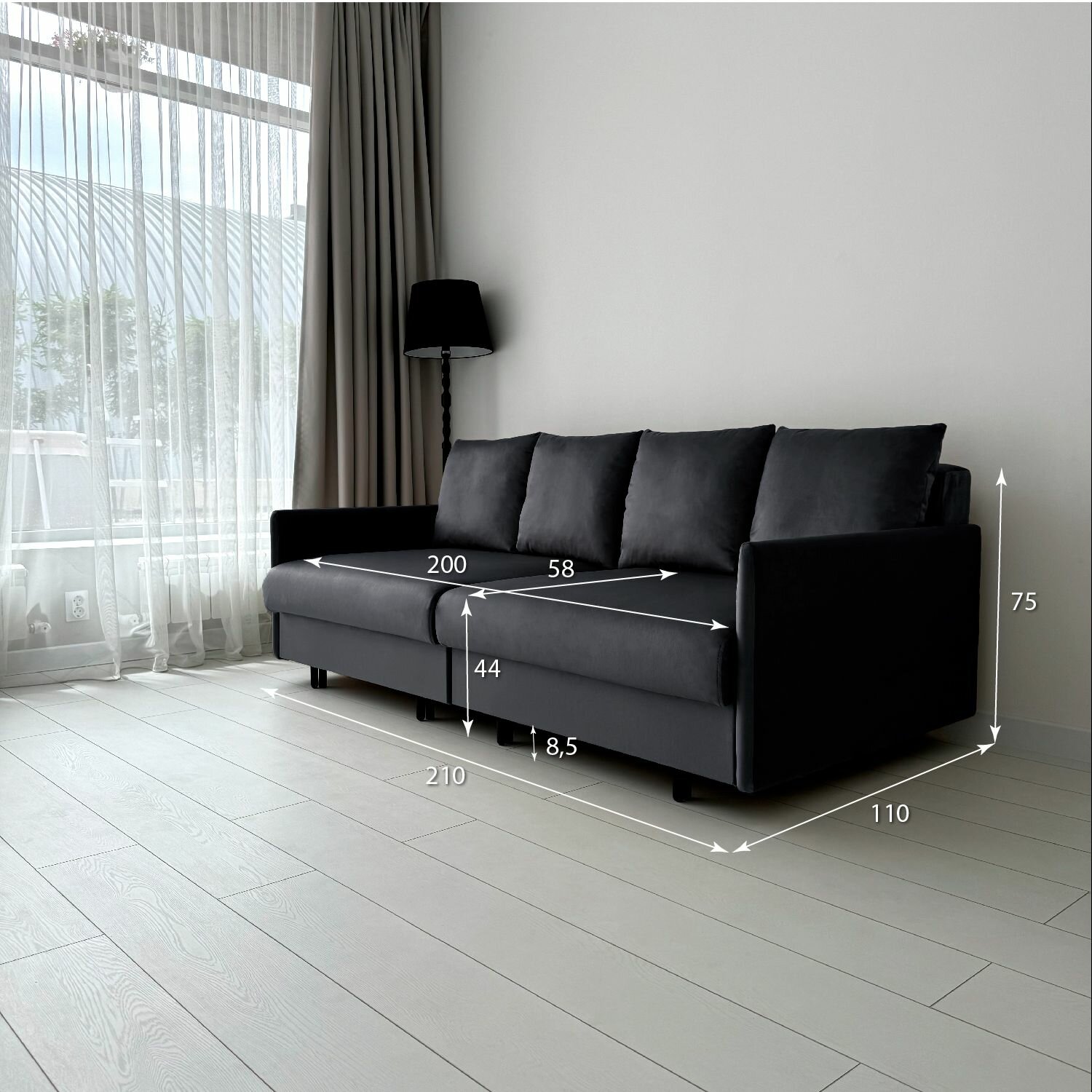 Диван-кровать Redsofa Модена 210см графит Teddi. Раскладной прямой диван со съемными чехлами Редсофа, для дома и офиса (Мебельный гарнитур бытового назначения)