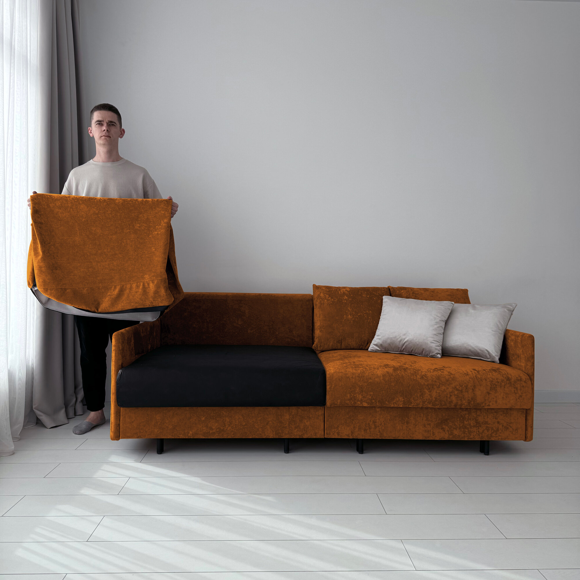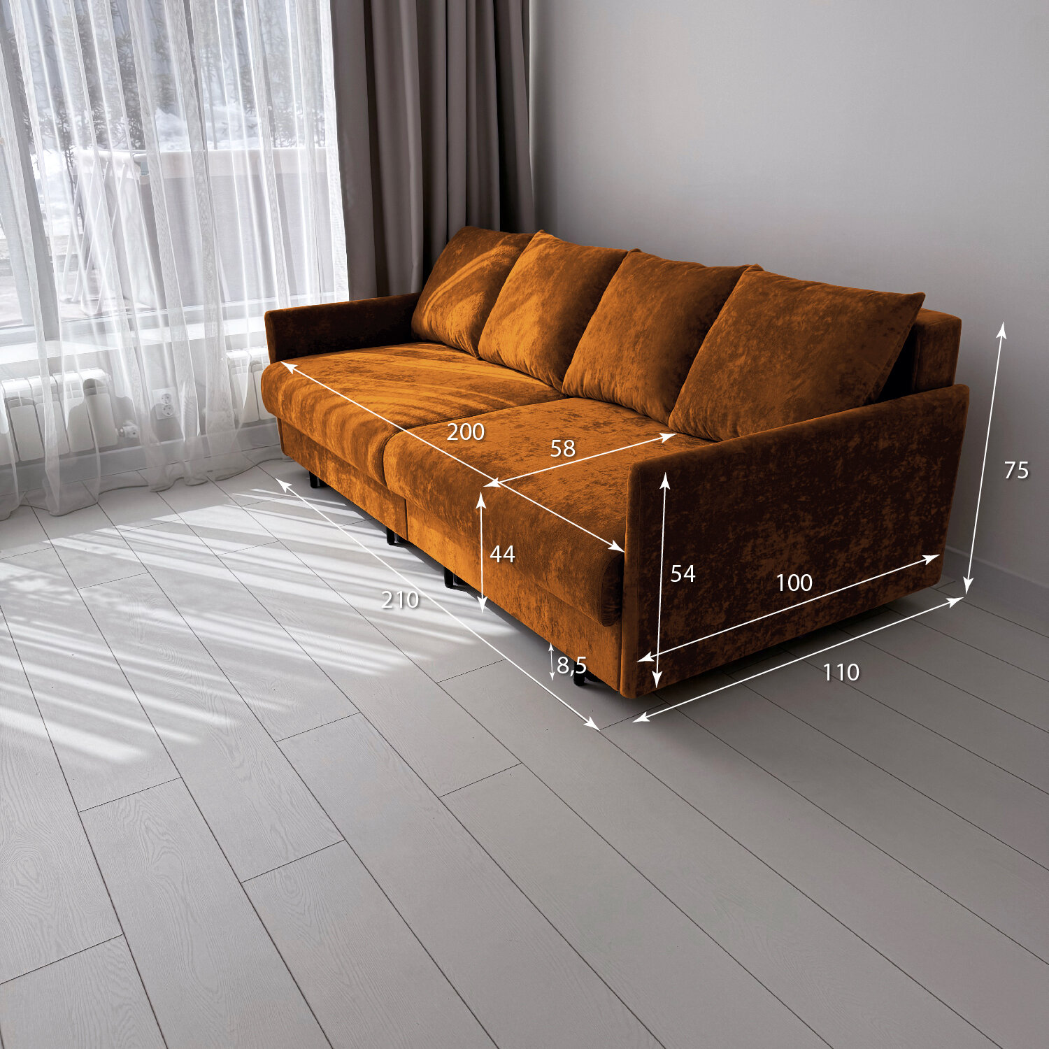 Купить Диван-кровать Redsofa Модена 210см охра Ocean. Раскладной прямой диван со съемными чехлами Редсофа, для дома и офиса