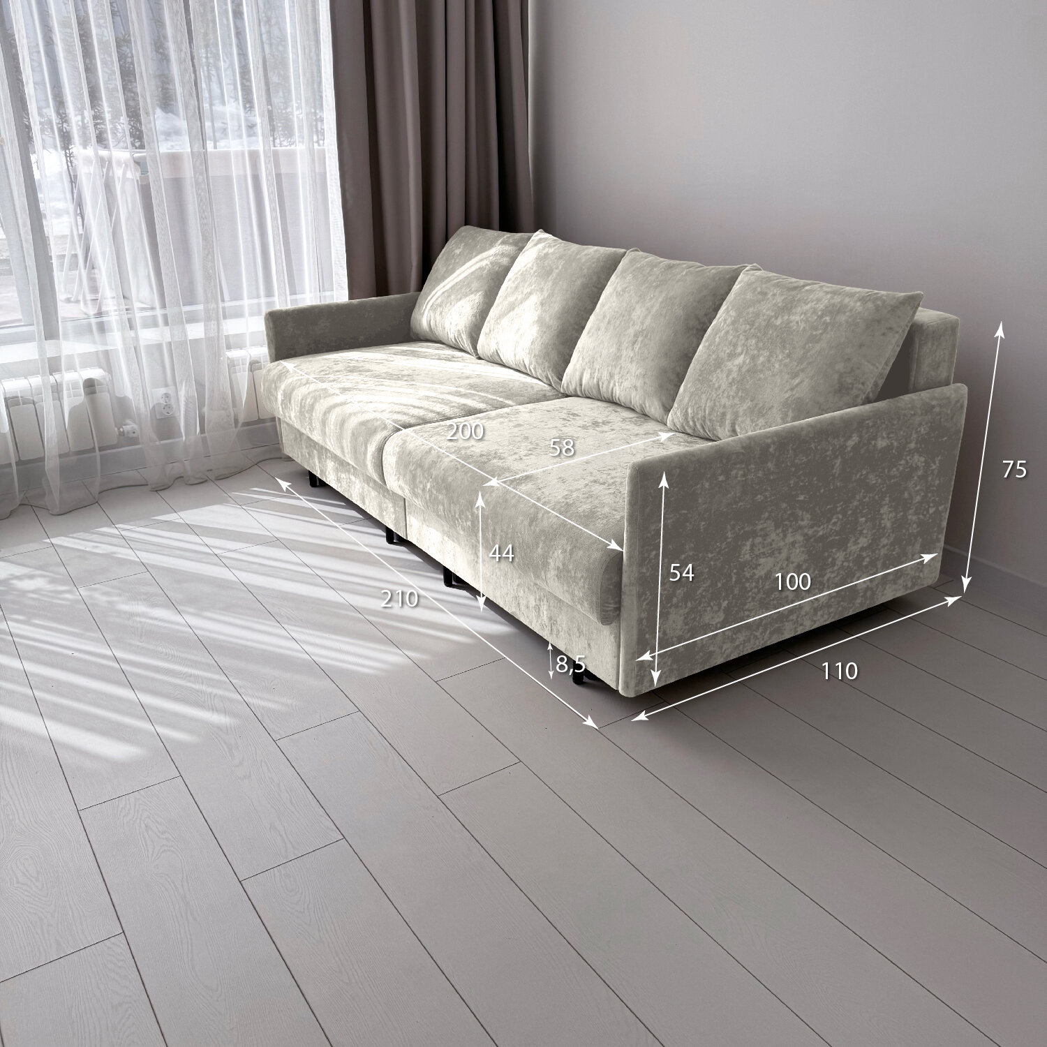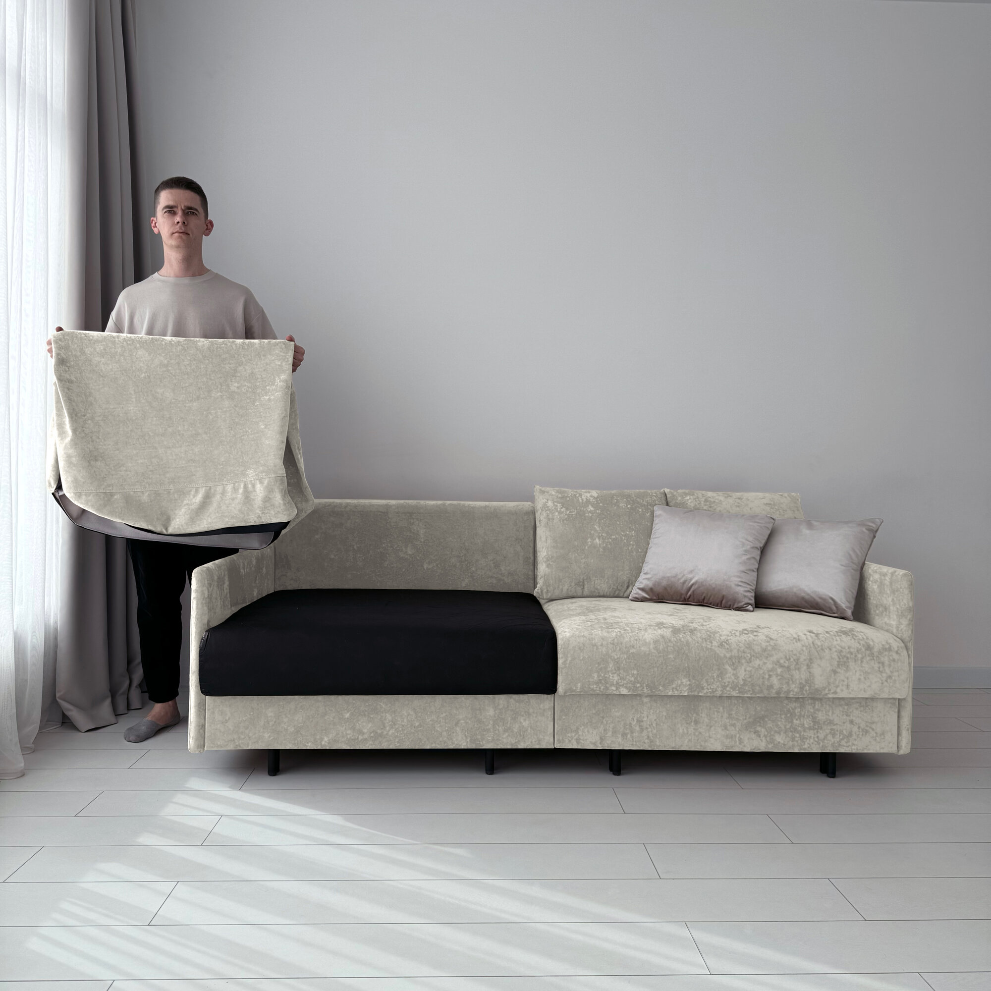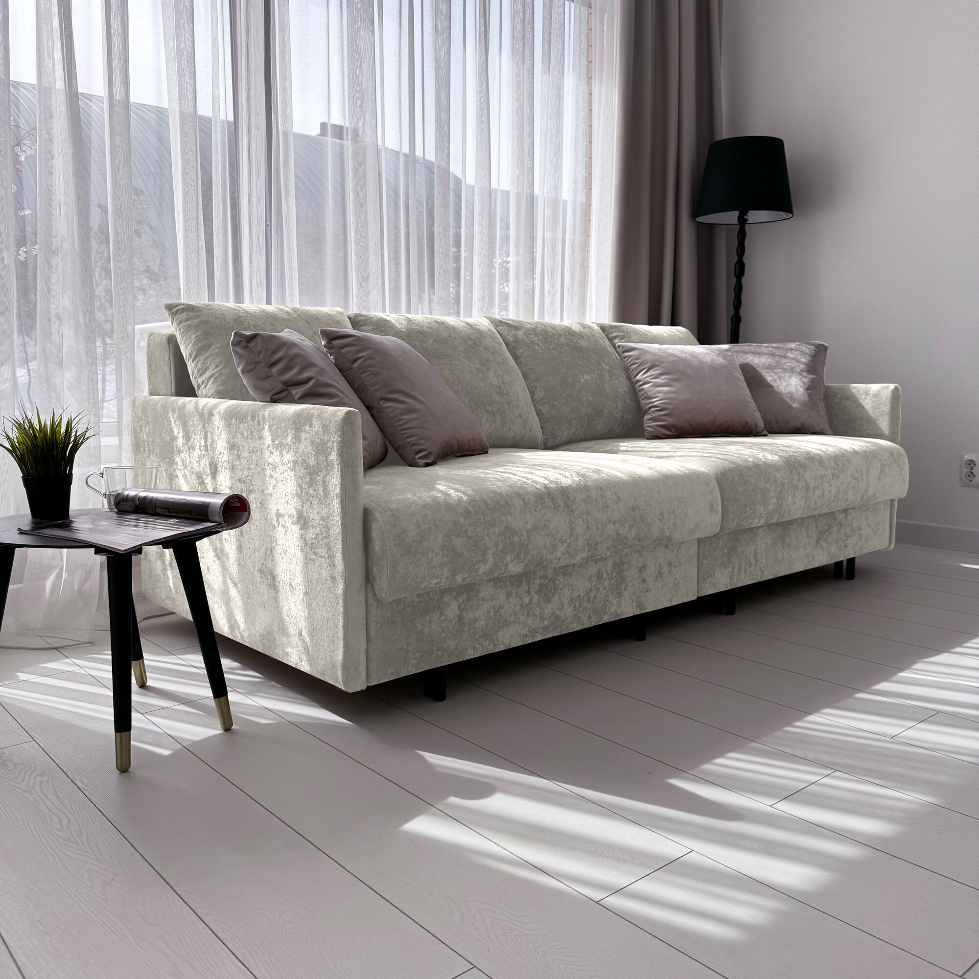 Диван-кровать Redsofa Модена 210см светло-серый Teddi. Раскладной прямой диван со съемными чехлами Редсофа, для дома и офиса