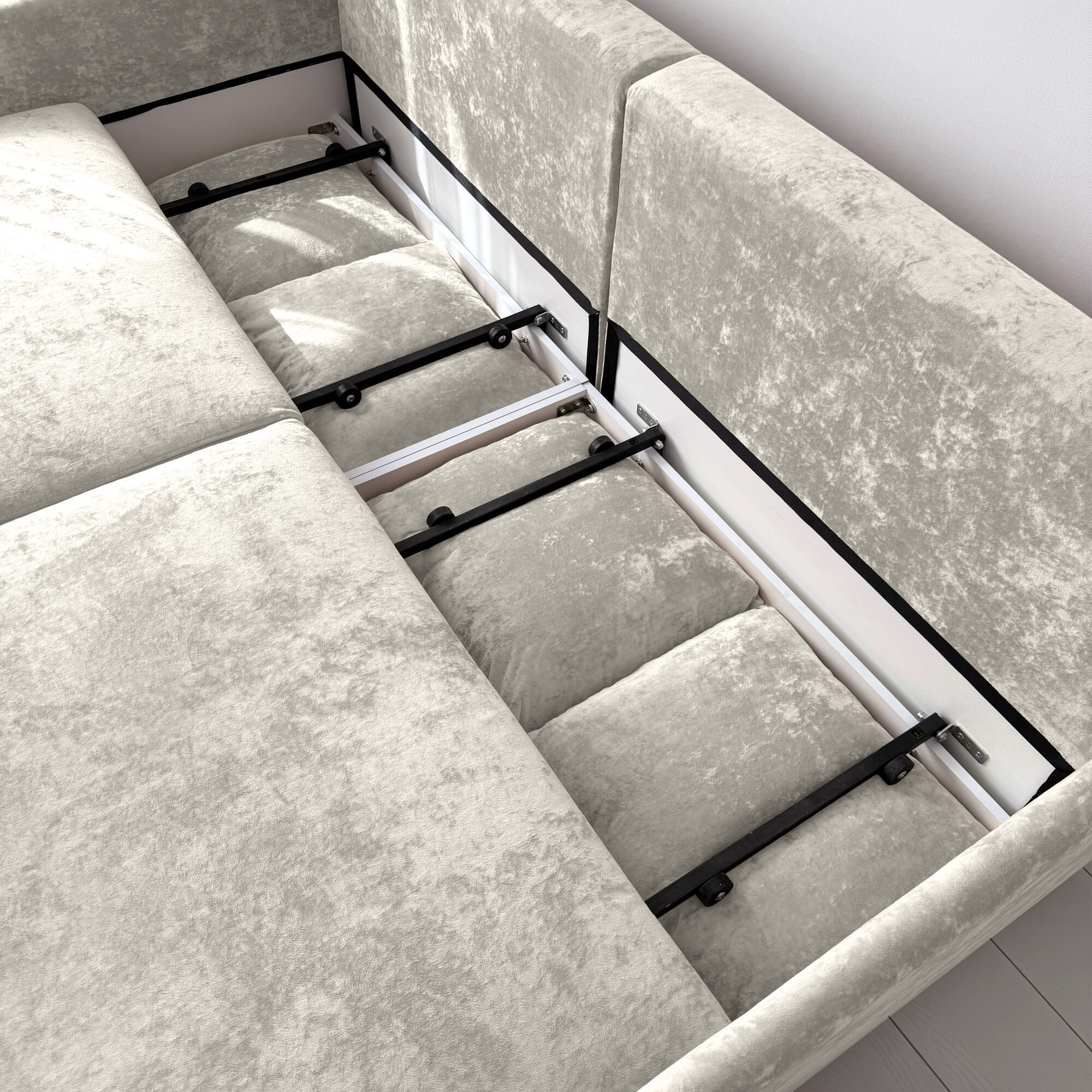 | Особенности | модульный, пружинный блок, раскладная конструкция, с подлокотниками, съемный чехол, ящик для белья |