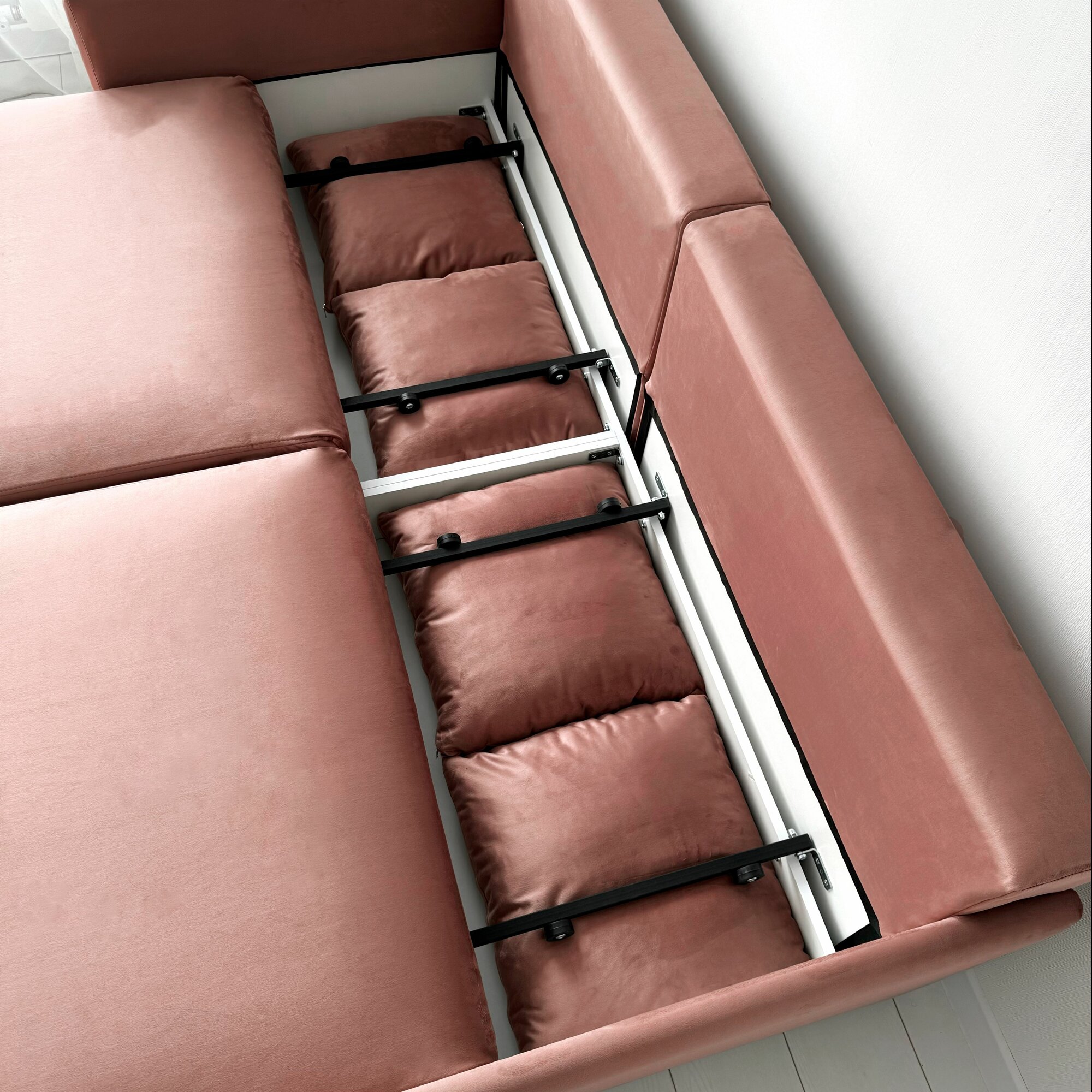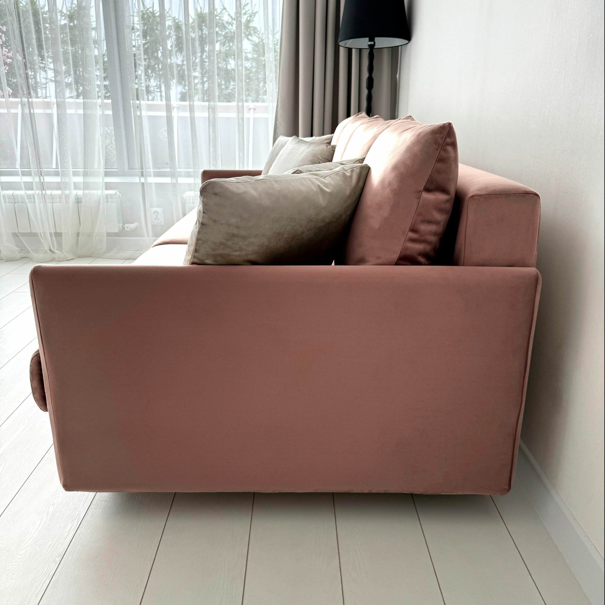 Диван-кровать Redsofa Модена 210см розовый антивандальный. Раскладной прямой диван со съемными чехлами Редсофа, для дома и офиса (Мебельный гарнитур бытового назначения)