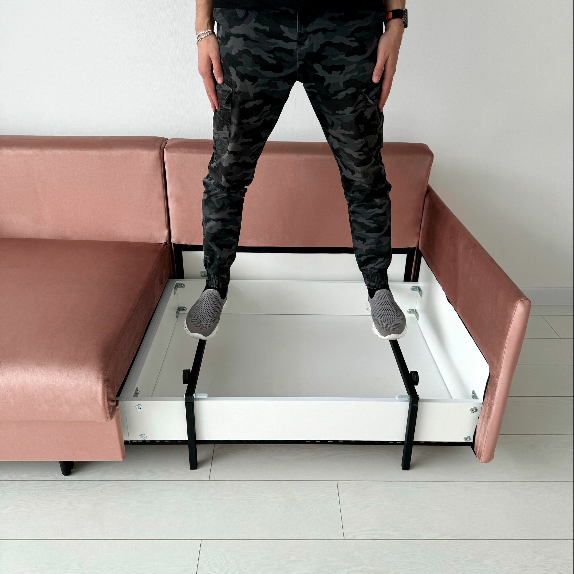 | Особенности | модульный, пружинный блок, раскладная конструкция, с подлокотниками, съемный чехол, ящик для белья |