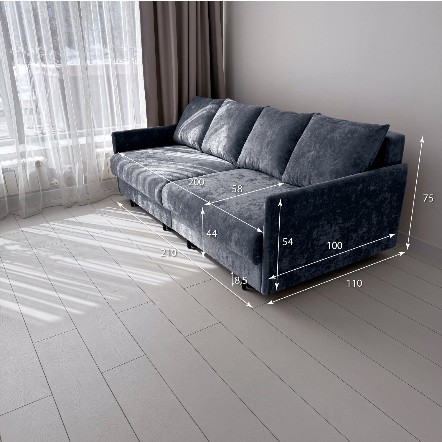 Диван-кровать Redsofa Модена 210см синий Teddi. Раскладной прямой диван со съемными чехлами Редсофа, для дома и офиса (Мебельный гарнитур бытового назначения)