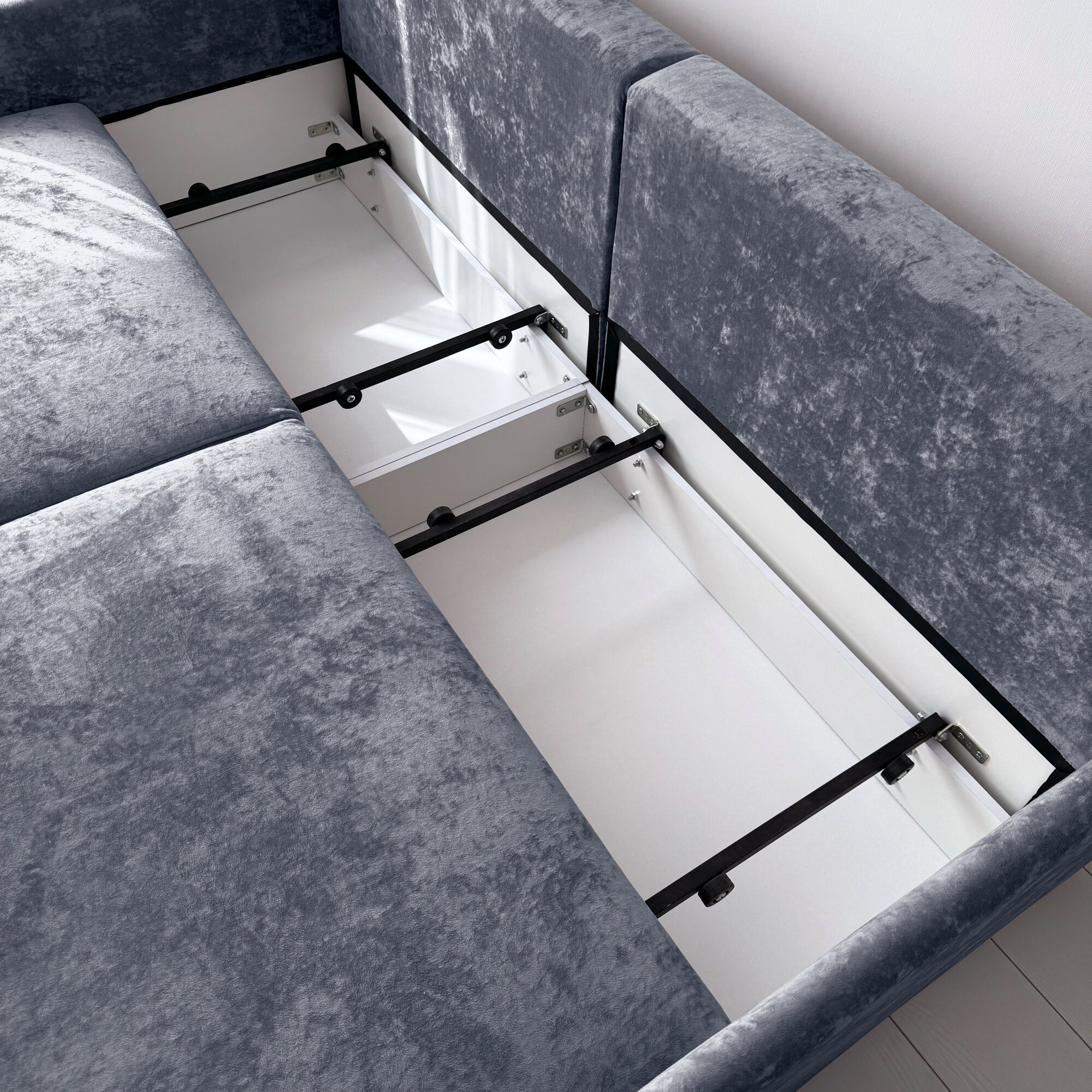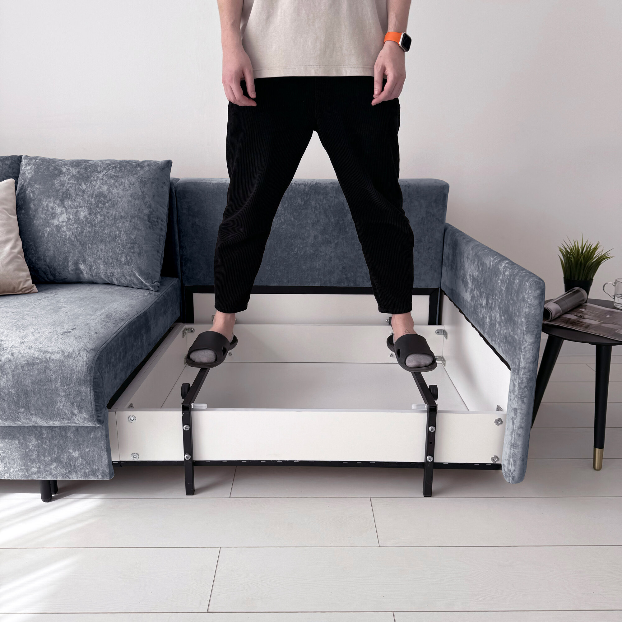 | Особенности | модульный, пружинный блок, раскладная конструкция, с подлокотниками, съемный чехол, ящик для белья |