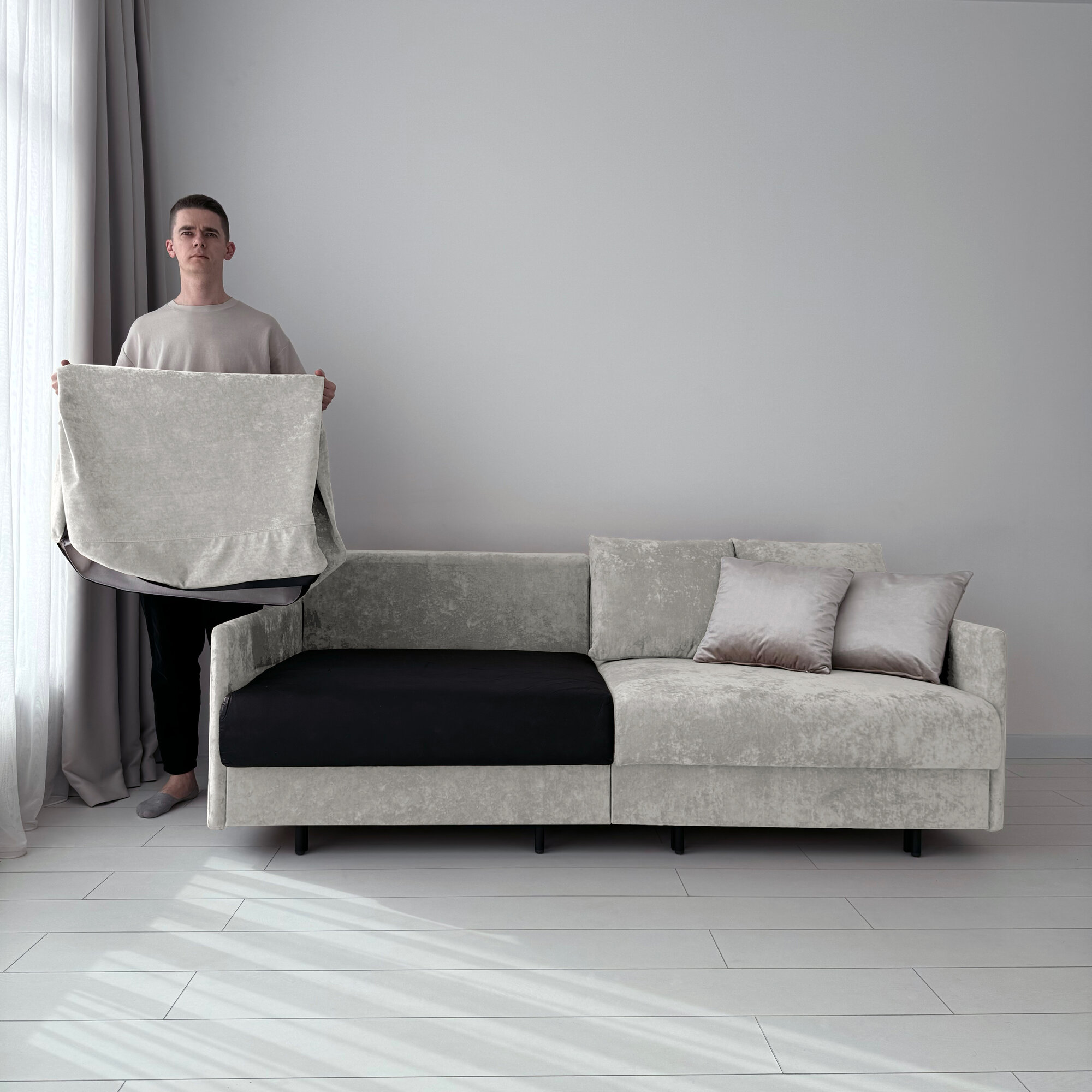 Диван-кровать Redsofa Модена 210см светло-серый Teddi. Раскладной прямой диван со съемными чехлами Редсофа, для дома и офиса (Мебельный гарнитур бытового назначения)