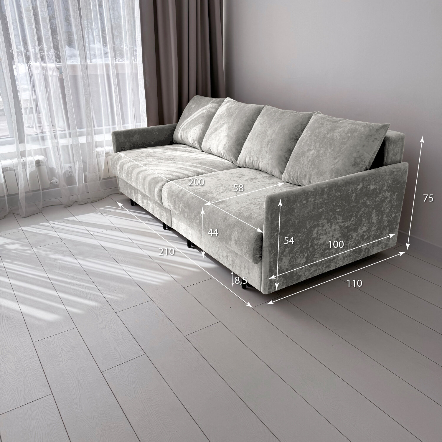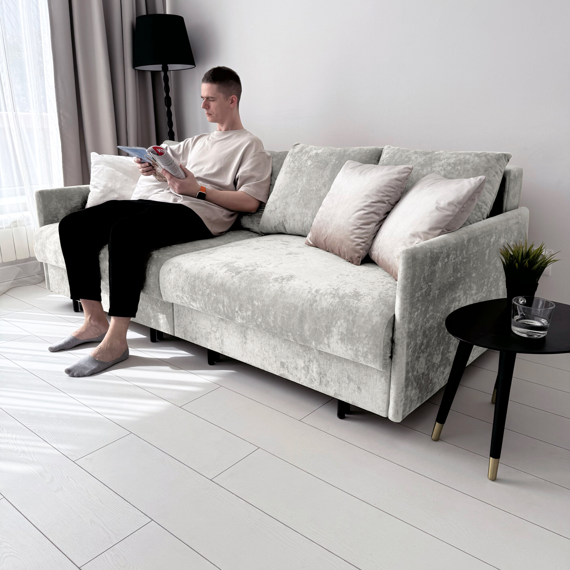 Диван-кровать Redsofa Модена 210см светло-серый Teddi. Раскладной прямой диван со съемными чехлами Редсофа, для дома и офиса