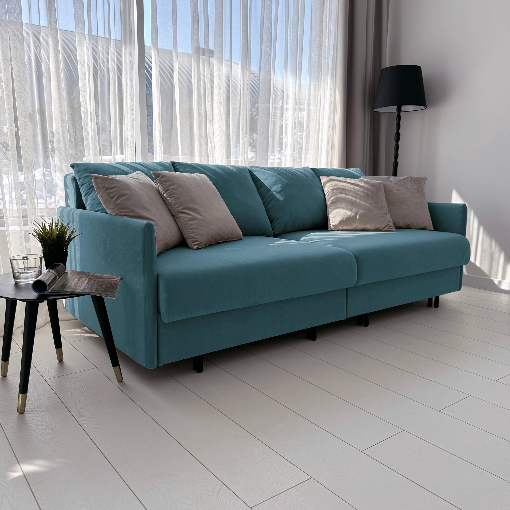 Диван-кровать Redsofa Модена 210см бирюзовый Teddi. Раскладной прямой диван со съемными чехлами Редсофа, для дома и офиса