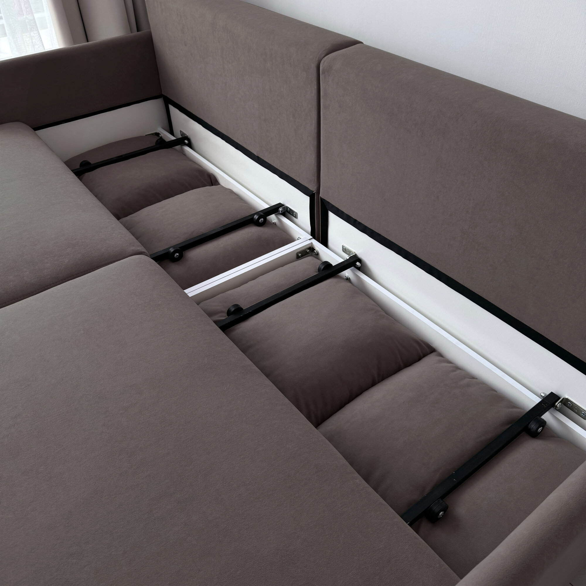 | Особенности | модульный, пружинный блок, раскладная конструкция, с подлокотниками, съемный чехол, ящик для белья |