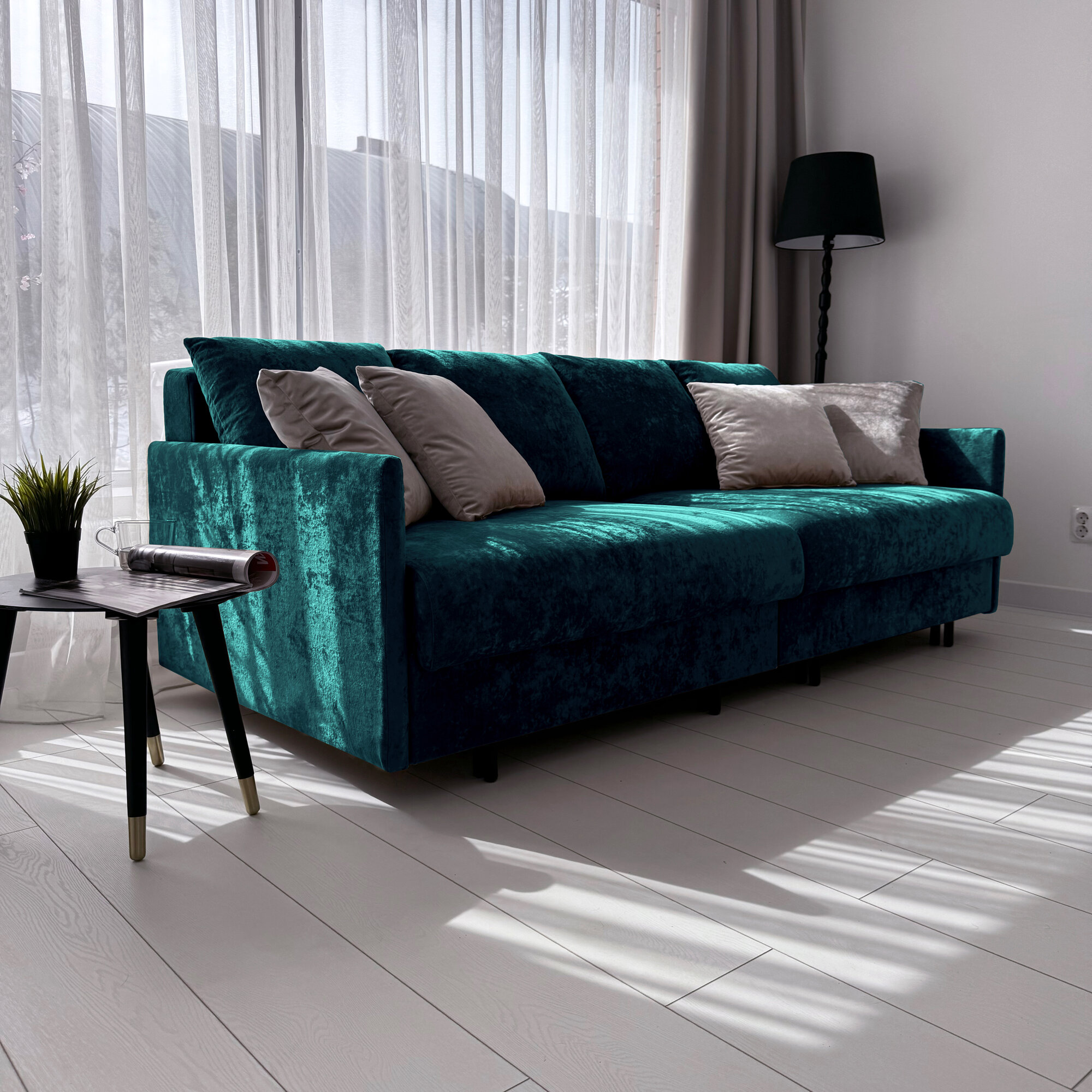 Диван-кровать Redsofa Модена 210см бирюзовый Teddi. Раскладной прямой диван со съемными чехлами Редсофа, для дома и офиса