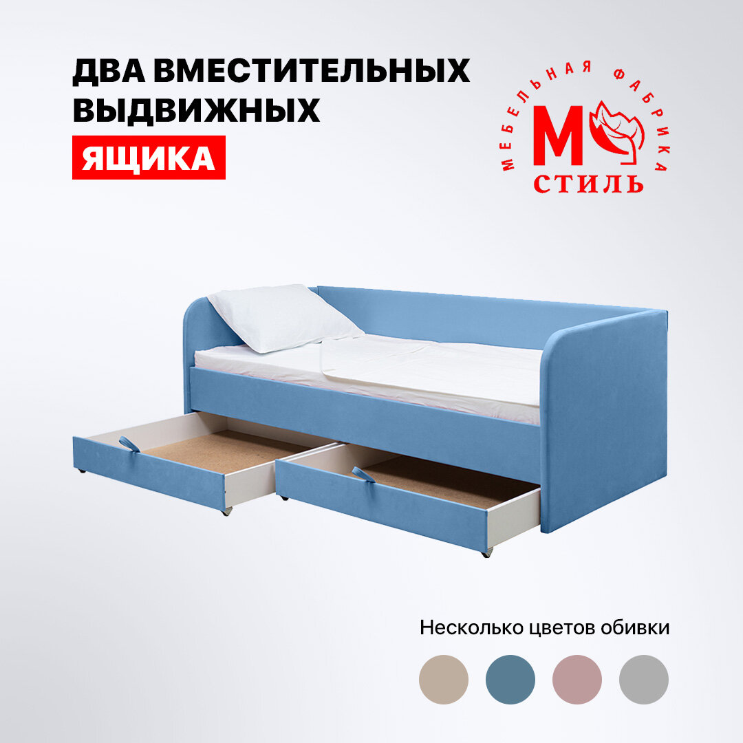 Купить Диван-кровать Софт 1900*800 голубая на ортопедическом основании с ящиками для хранения, кровать детская от 3 лет