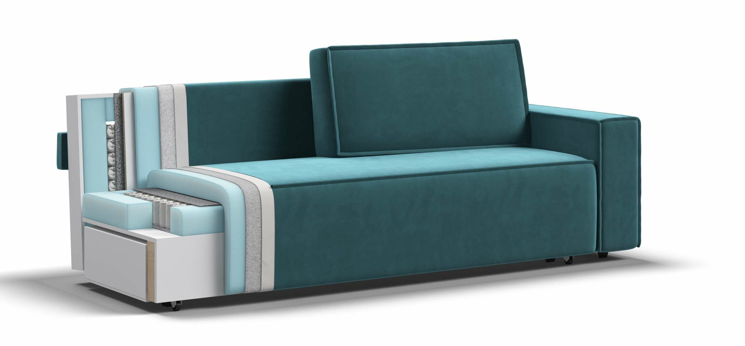 Диван-кровать Много мебели NORD 2.0, велюр Monolit Аква, 240х101х82 см