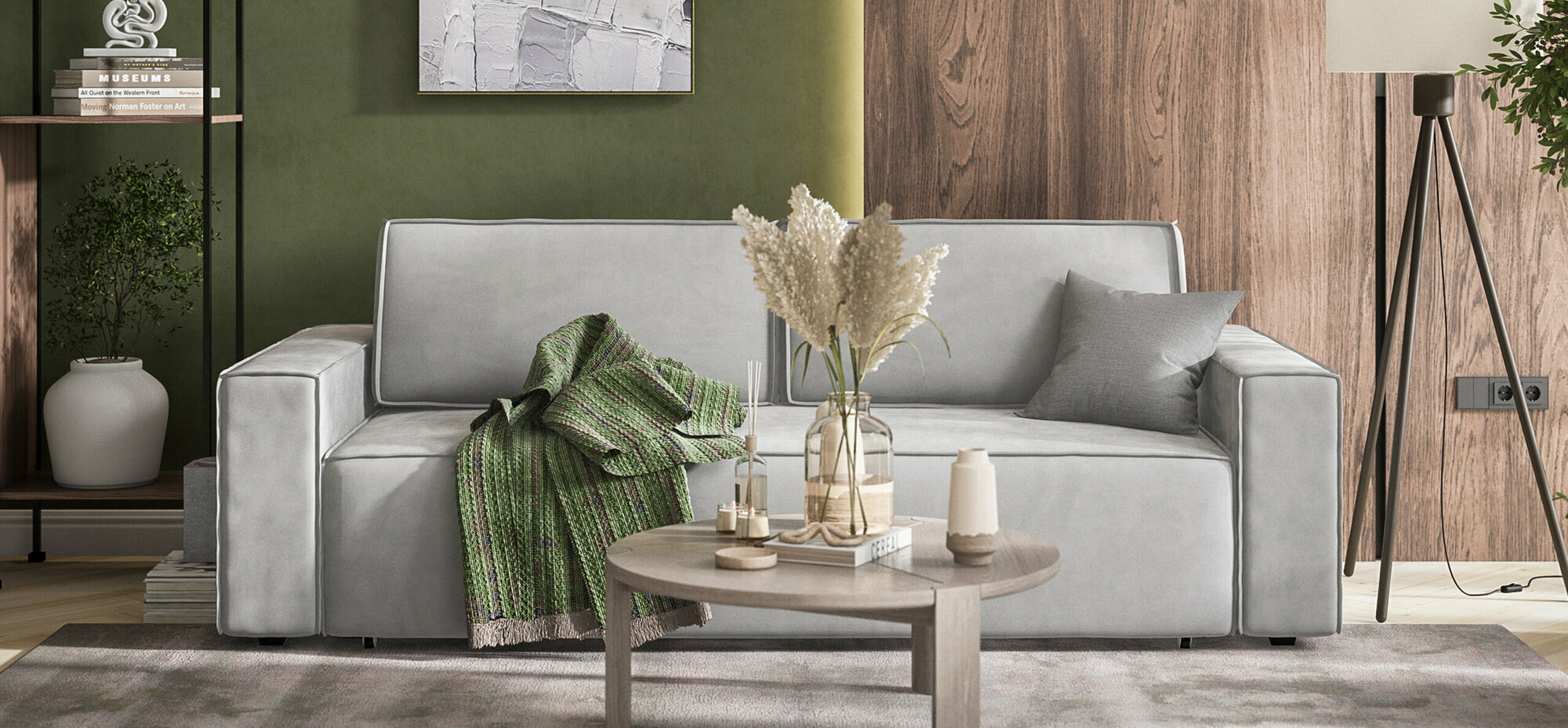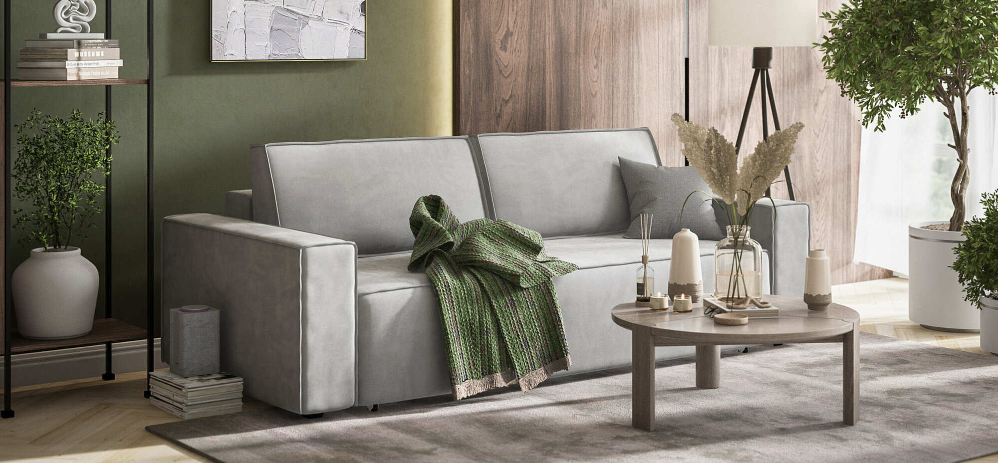 Диван-кровать Много мебели Nord 2.0, велюр Alkantara пепел, 240х101х82 см