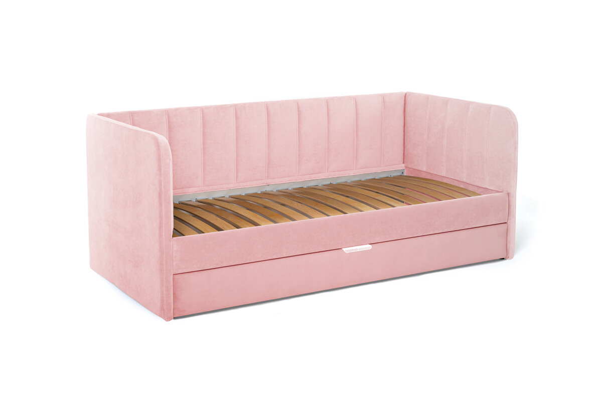 Futuka Kids Диван-кровать детская Crecker Newtone с ящиком для белья (дополнительным спальным местом), цвет роза 014, 200x90 см.