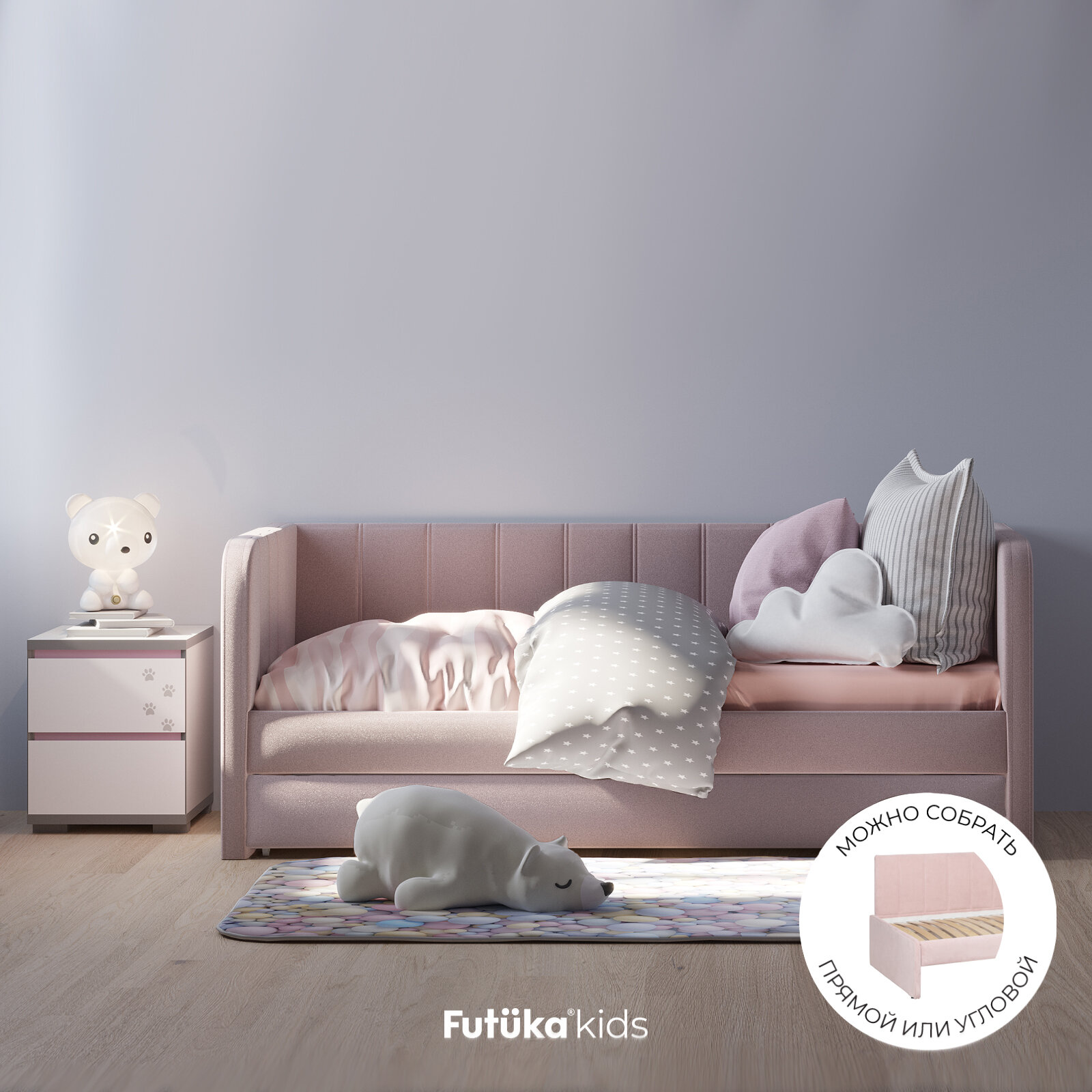 Futuka Kids Диван-кровать Crecker Teddy 316 с ящиком для белья (дополнительным спальным местом), цвет зефирно-розовый, 180x90 см.