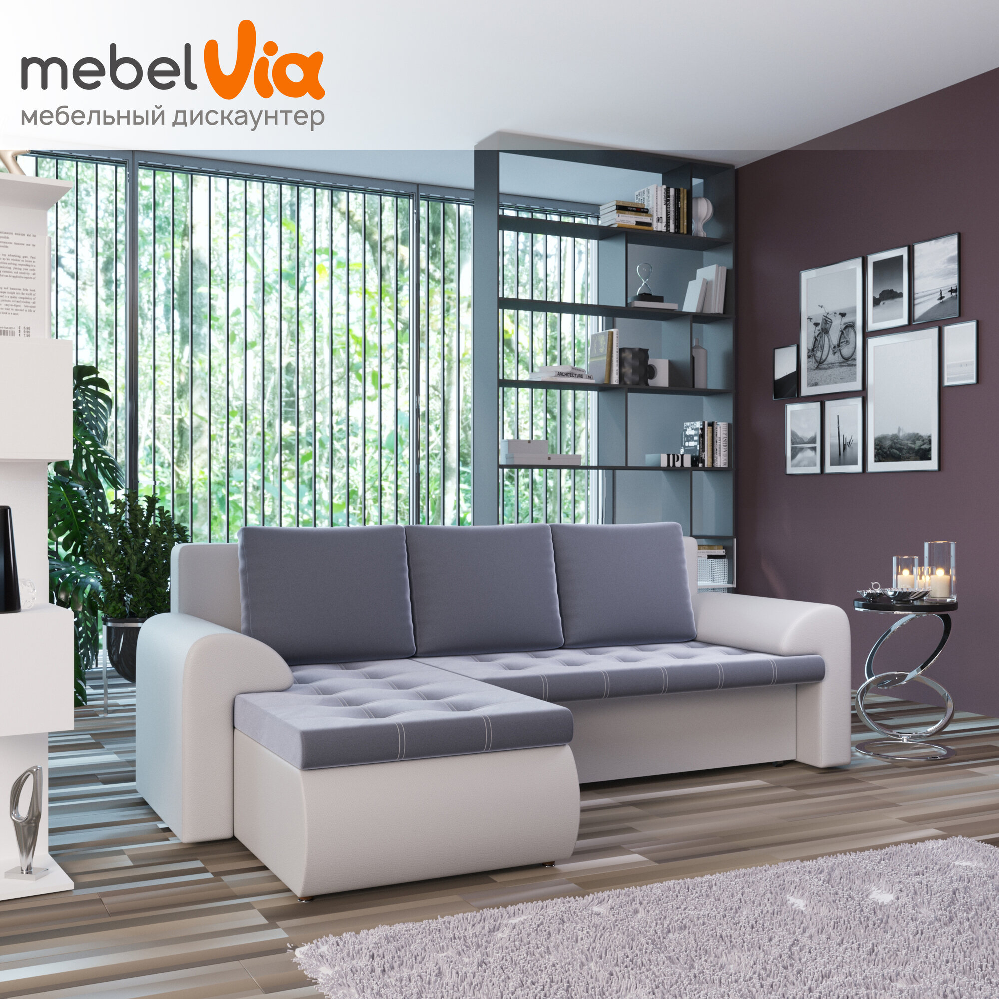 Купить Угловой диван Ванкувер Левый, белый, серый, искусственная кожа, велюр