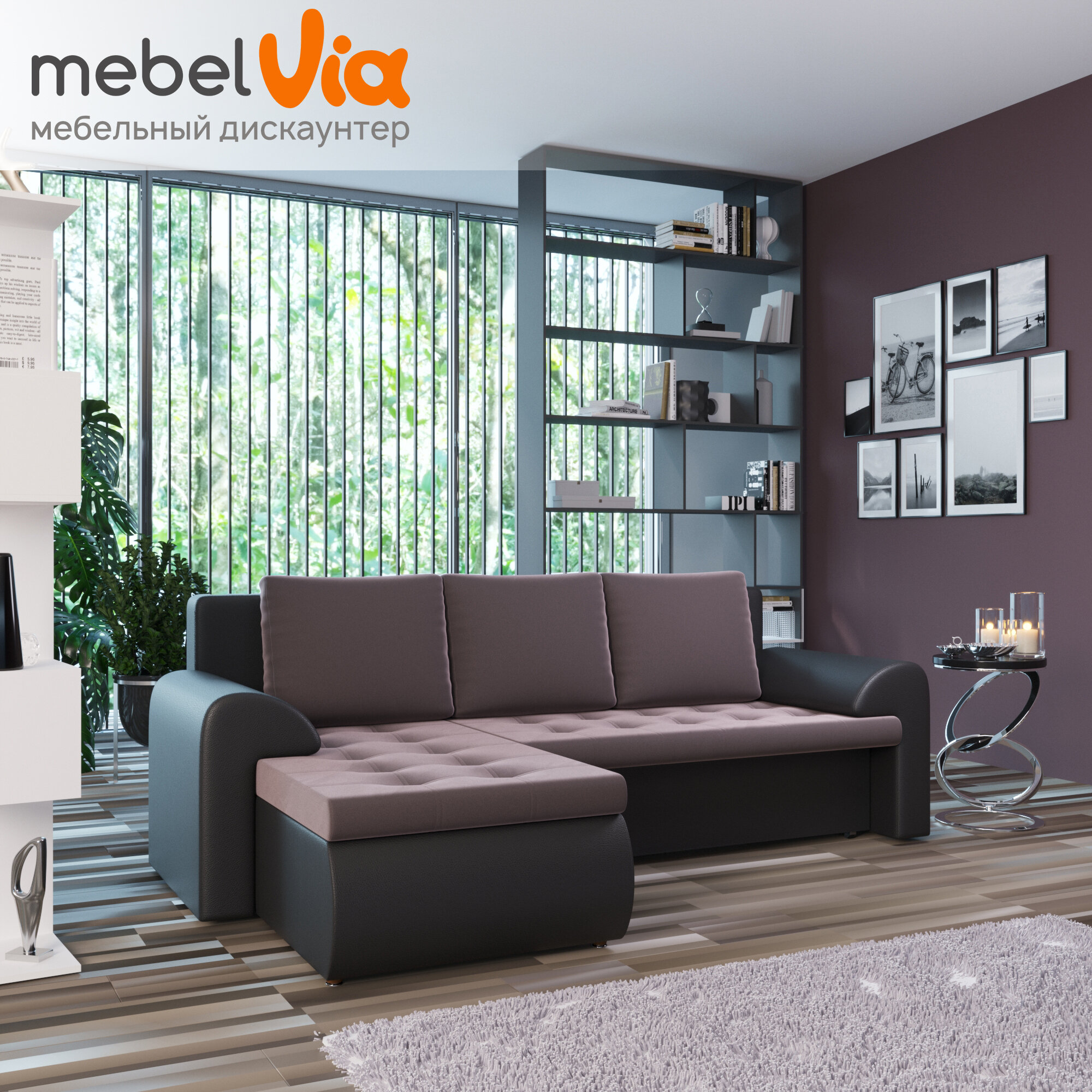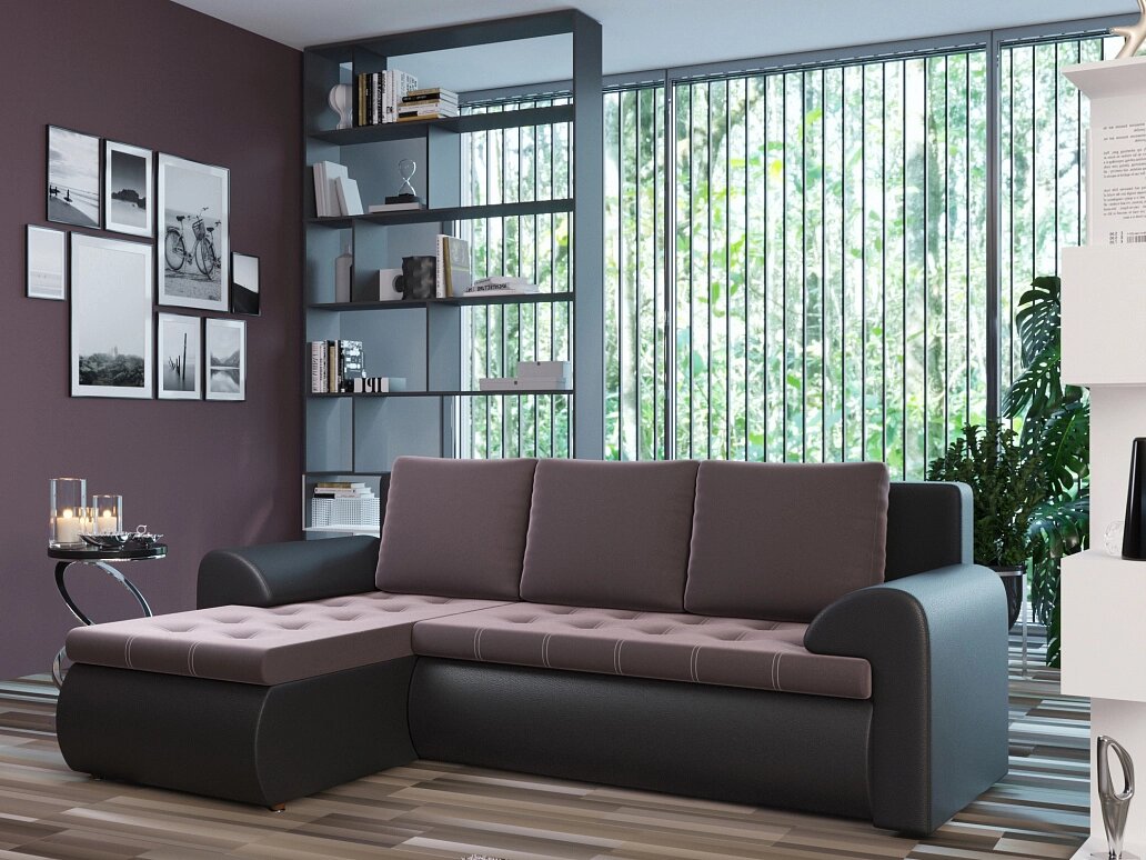 Купить Угловой диван Ванкувер Левый, коричневый черный, искусственная кожа, велюр