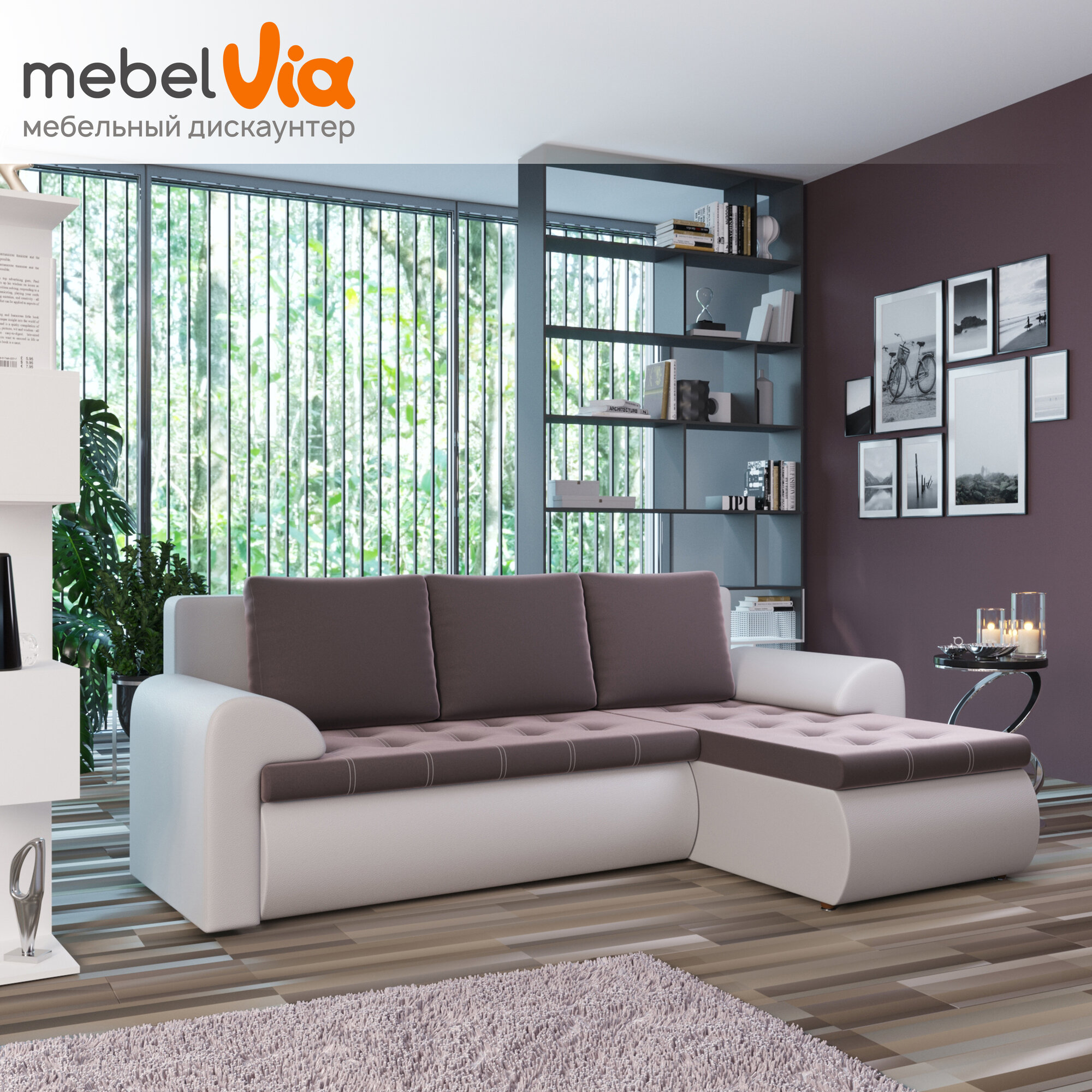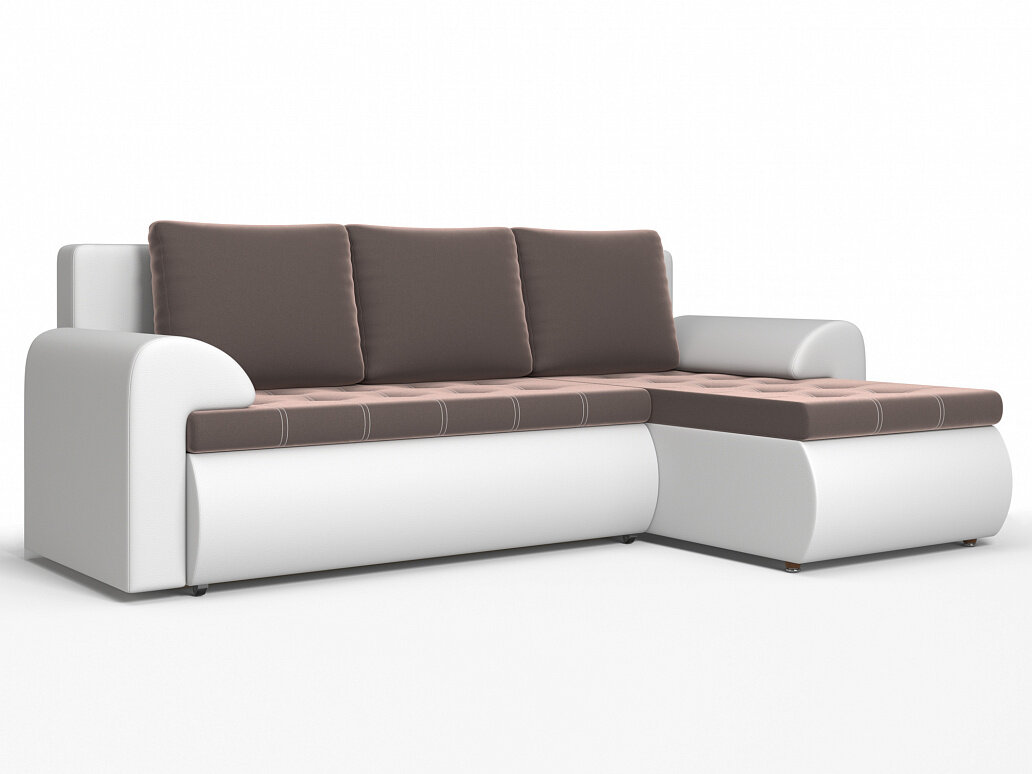 Купить Угловой диван Ванкувер Правый, коричневый, белый, искусственная кожа, велюр