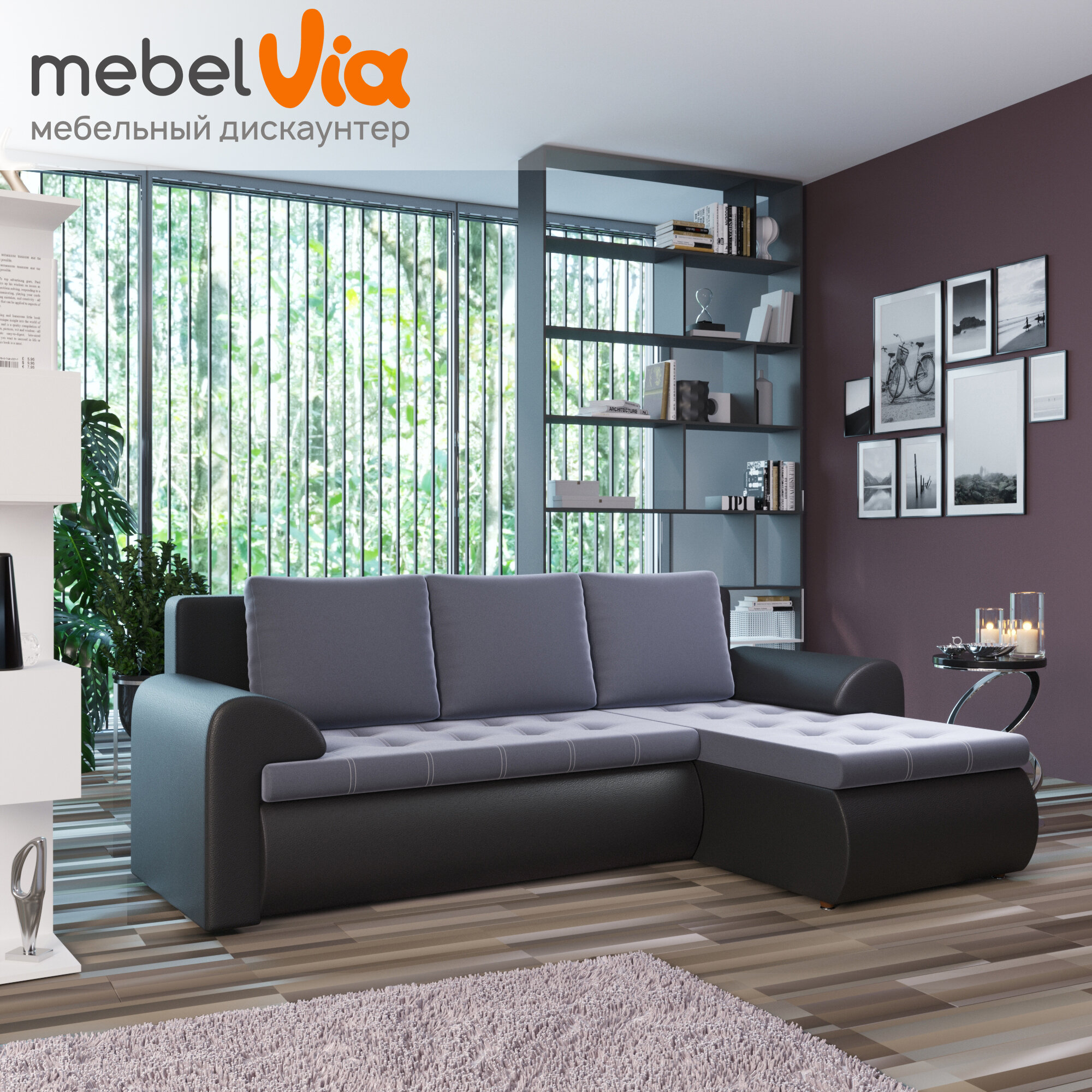 Угловой диван Ванкувер Левый, серый, черный, искусственная кожа, велюр