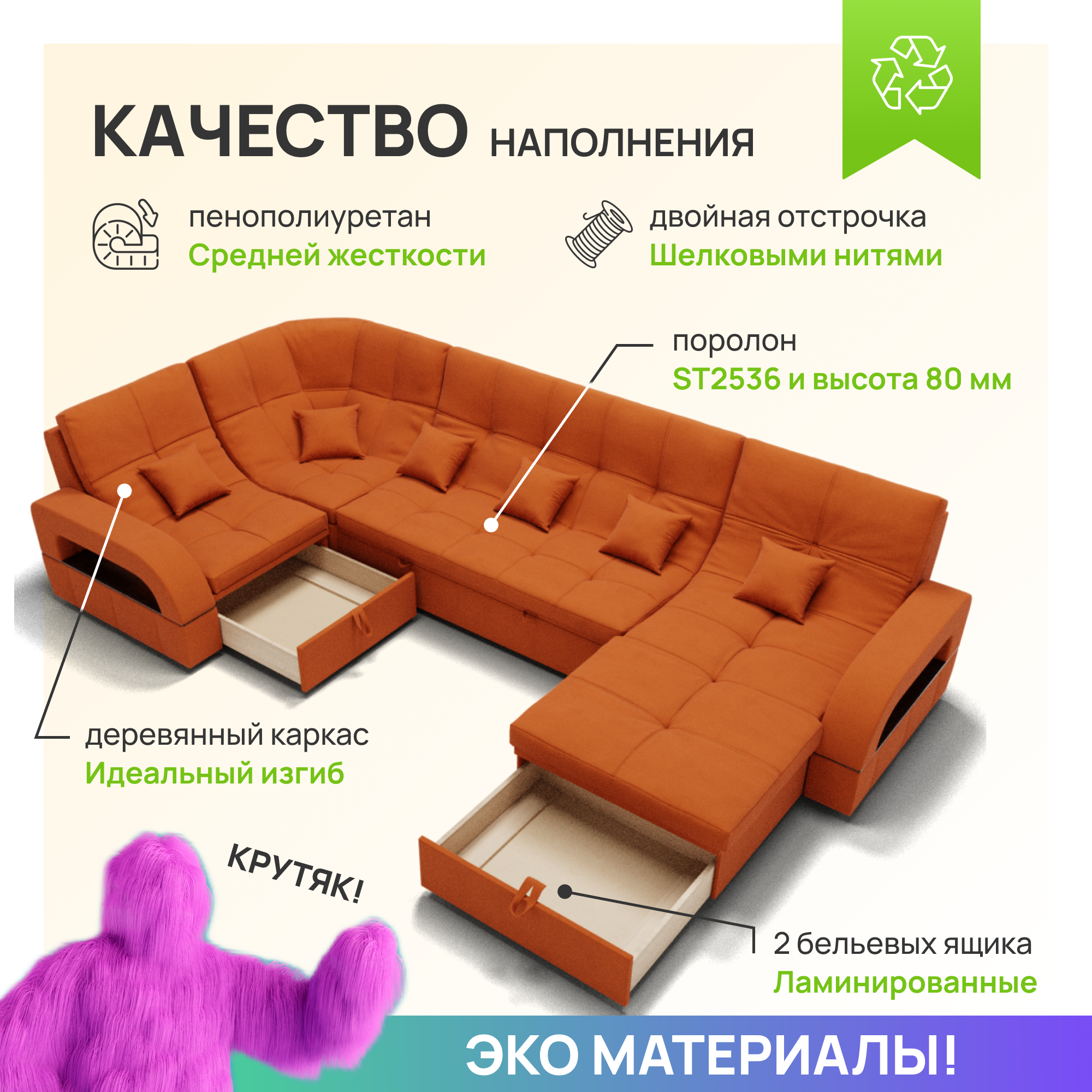 Купить Модульный диван, Майами-4 ,Велютта люкс 58 премиум класса YORCOM,350x135x97,Оранжевый. Велюр,ППУ,ДВП,Дерево,механизм Венеция.