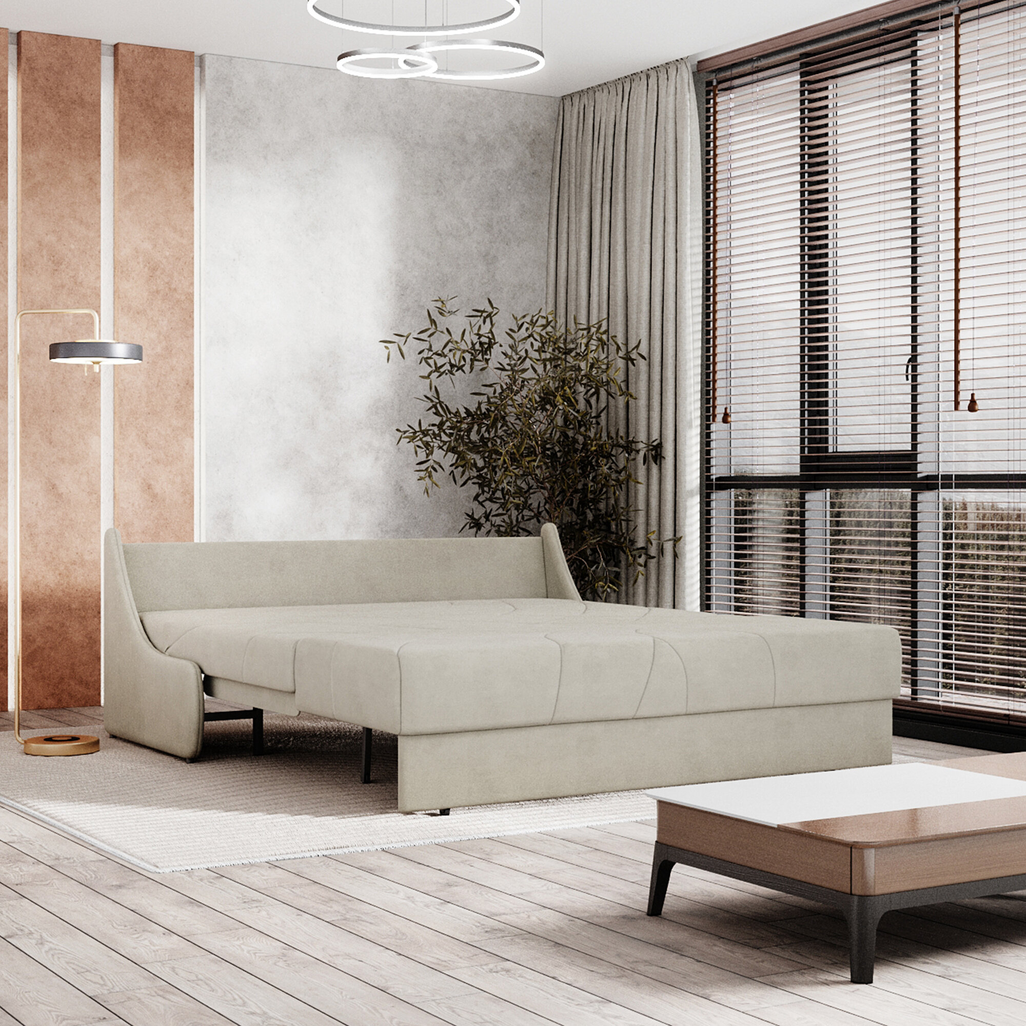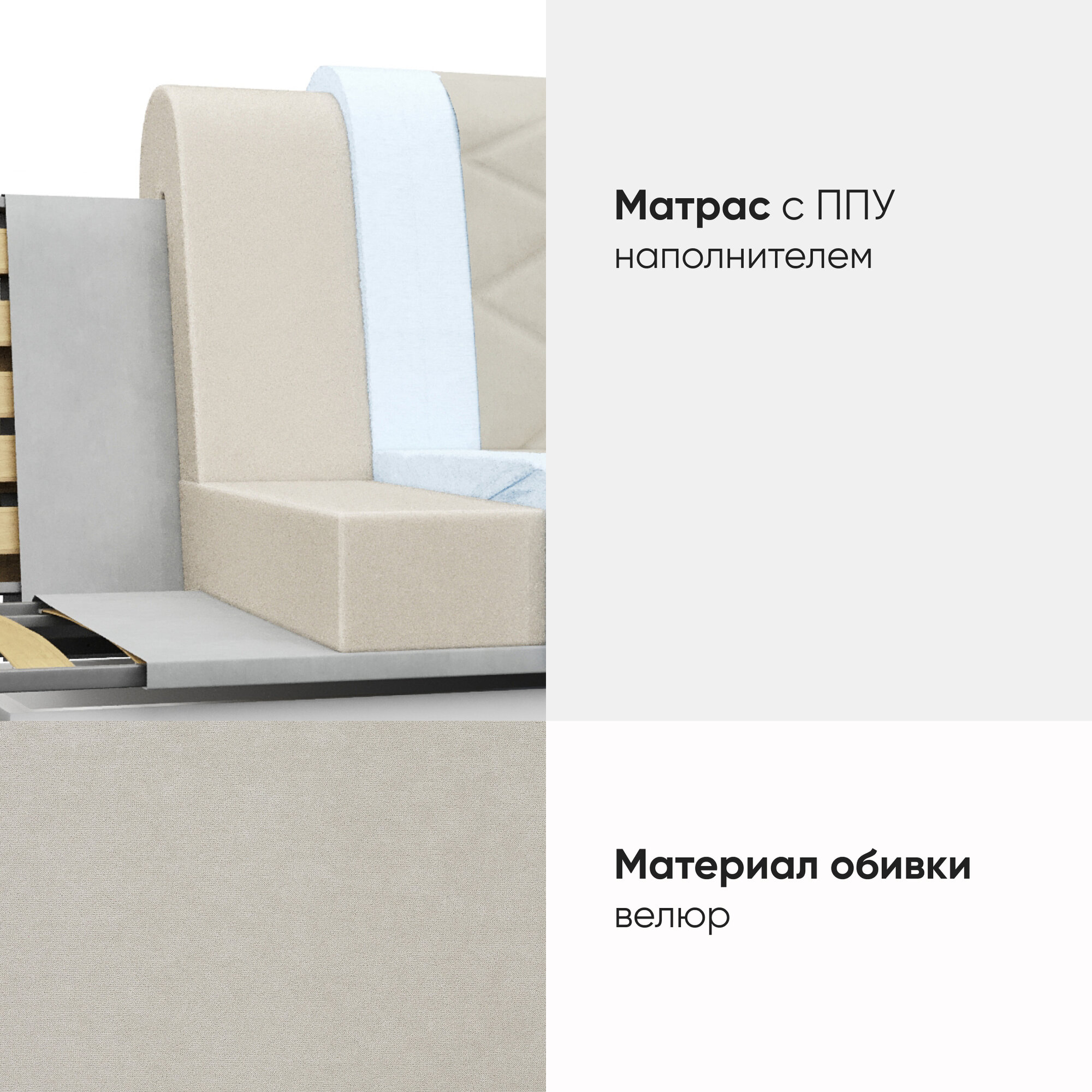 Диван-кровать раскладной Прямой на металлокаркасе, Аккордеон, ортопедический, 162х200, Клайд, велюр бежевый