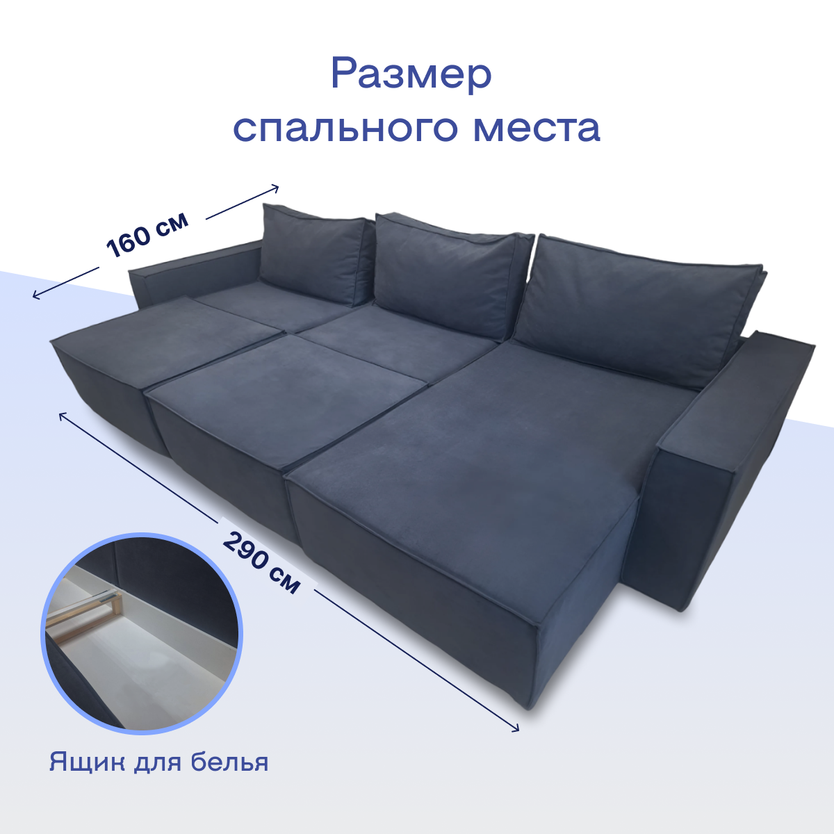 | Особенности | модульный, пружинный блок, раскладная конструкция, с подлокотниками, съемные подушки, ящик для белья |