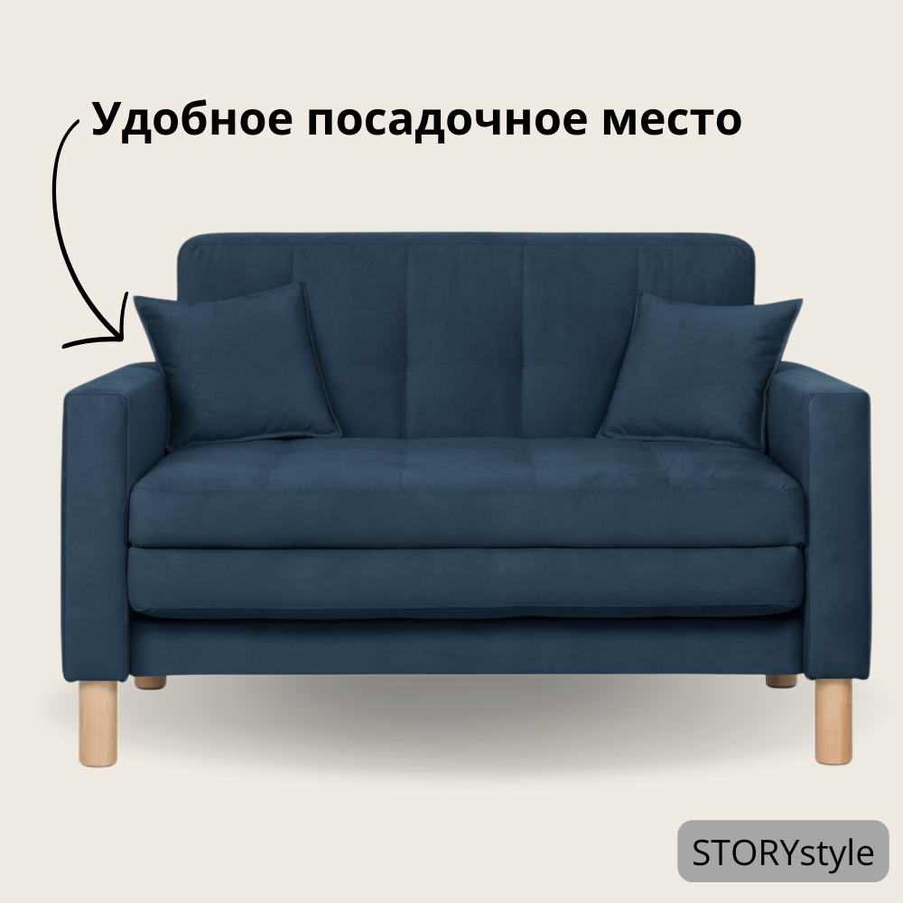 СохранитьДиван-кровать Монро, прямой, 122*77*78, спальное 100*194, велюр синий, Велутто 26 интересное:
