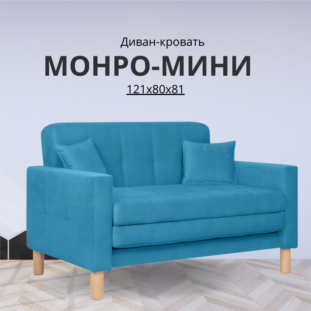 Диван-кровать Монро, прямой, 122*77*78, спальное 100*194, велюр лазурный, Велутто 20