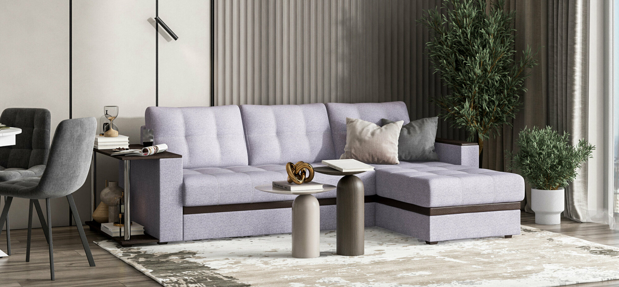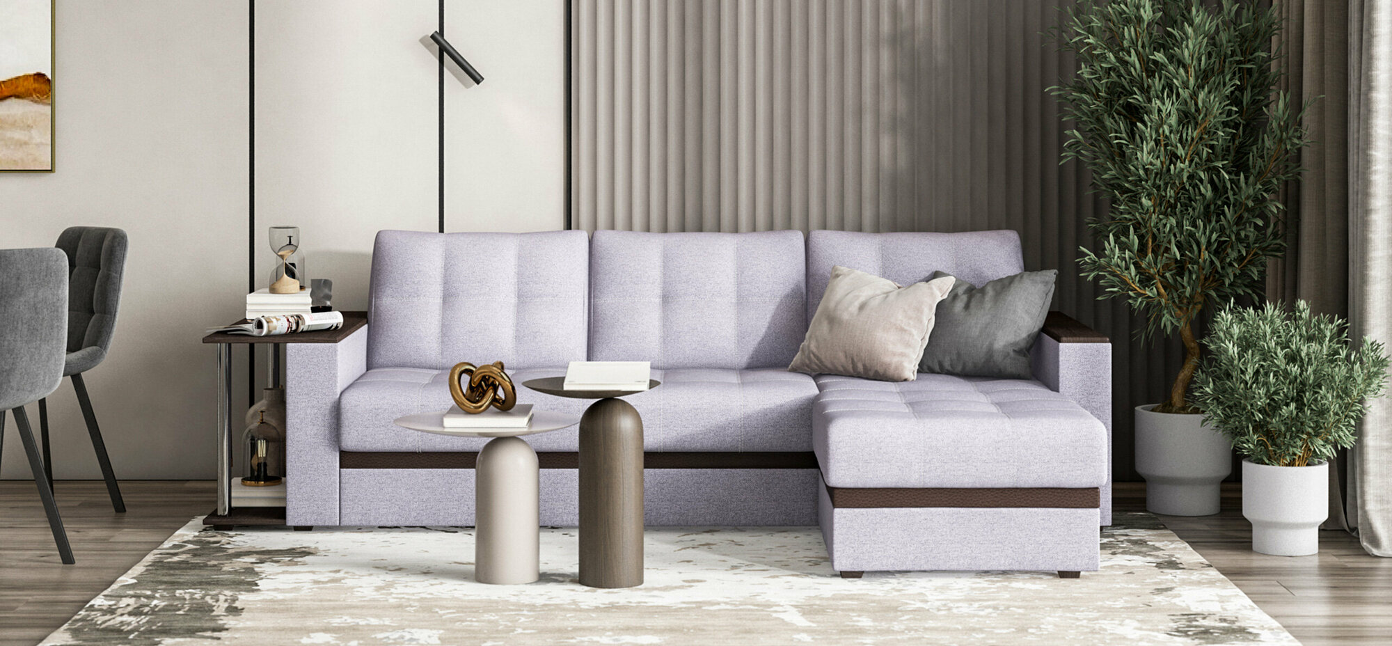 Угловой диван-кровать Атланта НПБ, с ящиком для хранения, механизм дельфин, рогожка Malmo платина, 255х160х92 см