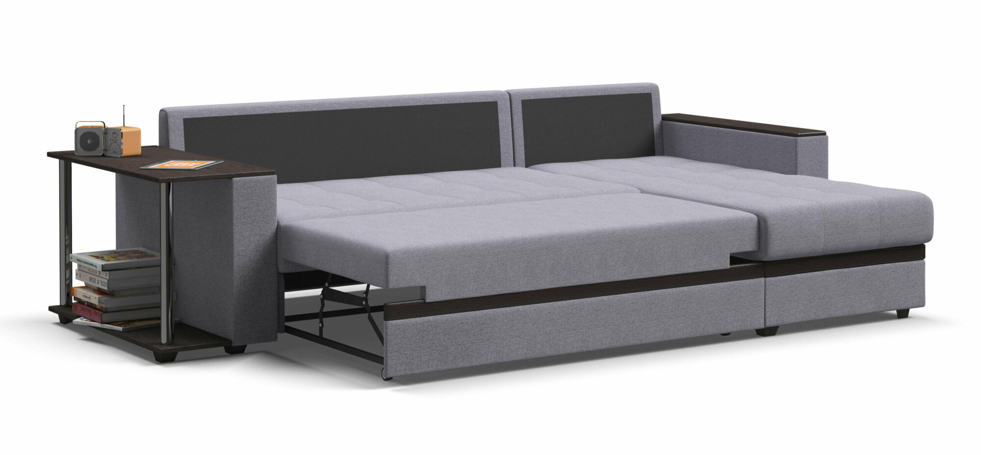 Угловой диван-кровать Атланта НПБ, с ящиком для хранения, механизм дельфин, рогожка Malmo серый, 250х160х92 см