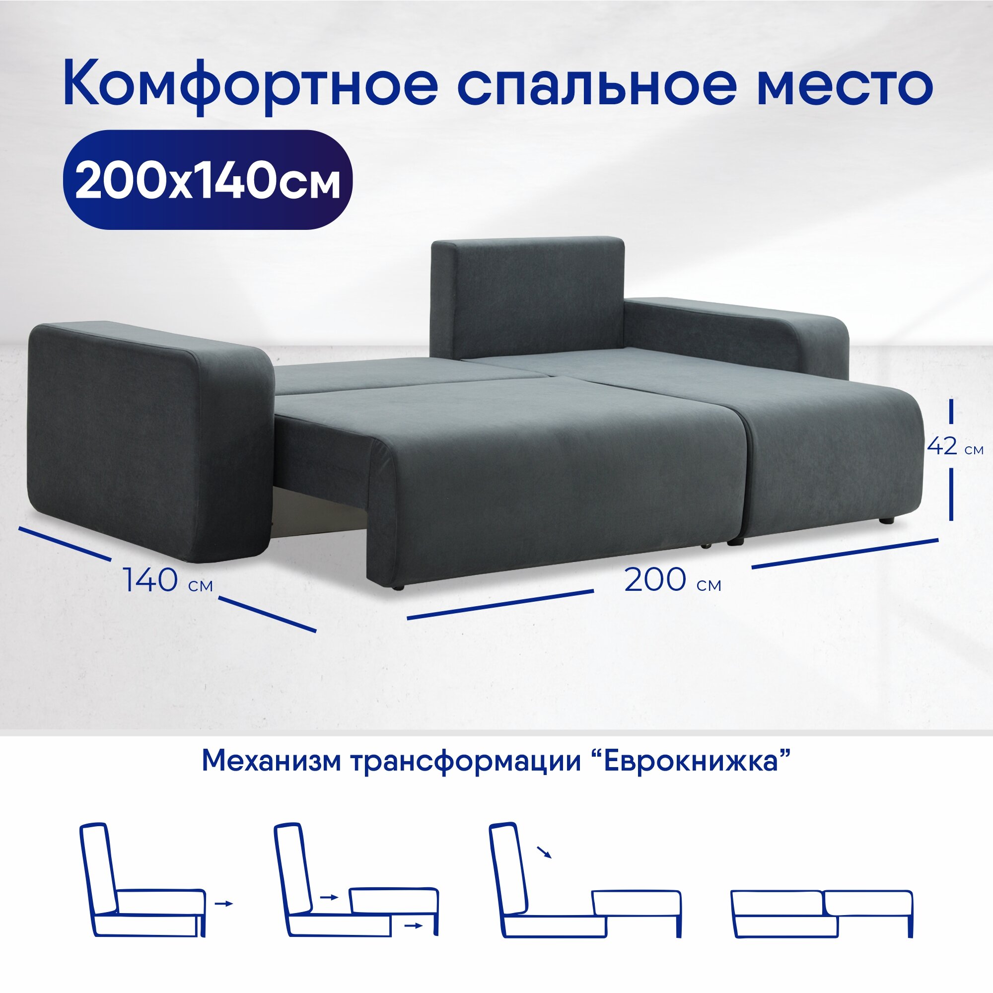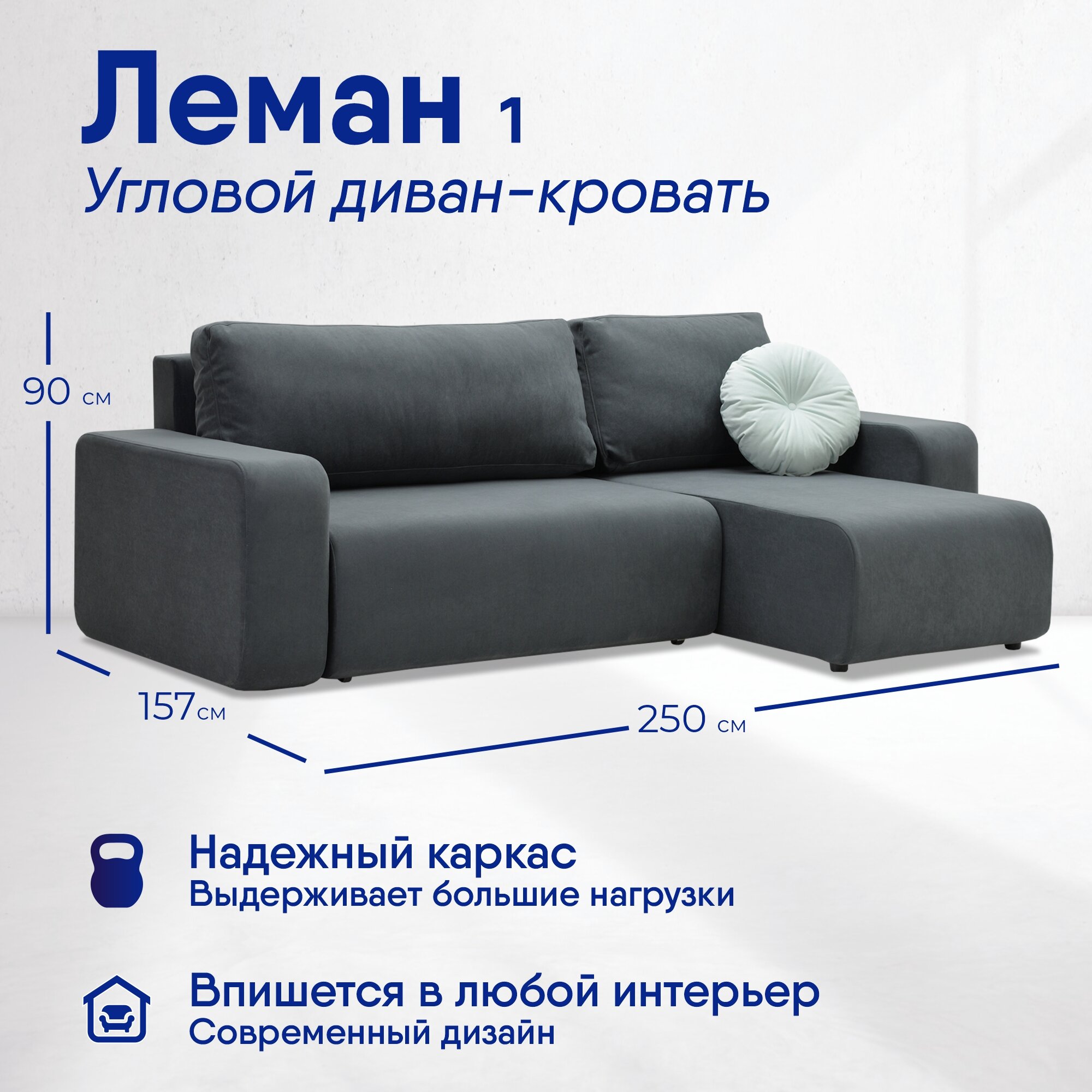 Угловой диван-кровать Леман_1, независимый пружинный блок, 250х157х90 см, спальное место: 140х200 см, Brendy Graphite интересное: