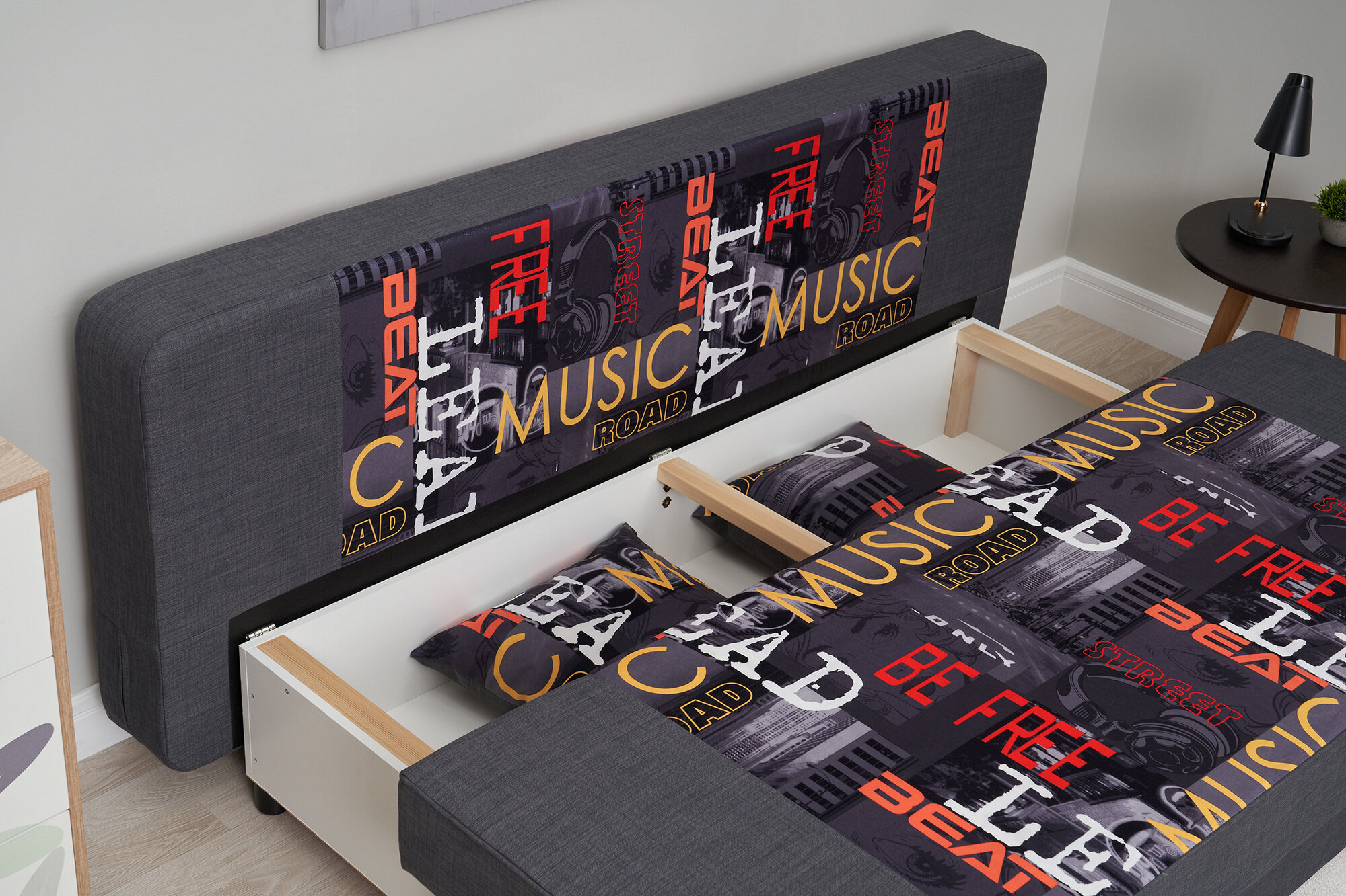Купить Диван Нонтон Арвен темно-серый / принт Music Grafit 195х95х89 см
