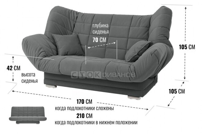 Диван Сток Диванов Марко Smokey темно-серый, механизм клик-кляк
