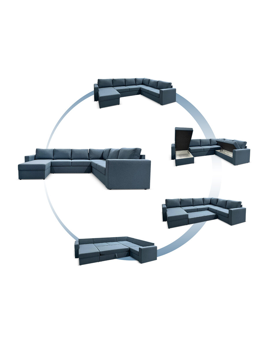 Купить Диван угловой раскладной П-образный Кольдинг, 304х235х85, механизм дельфин, синий рогожка