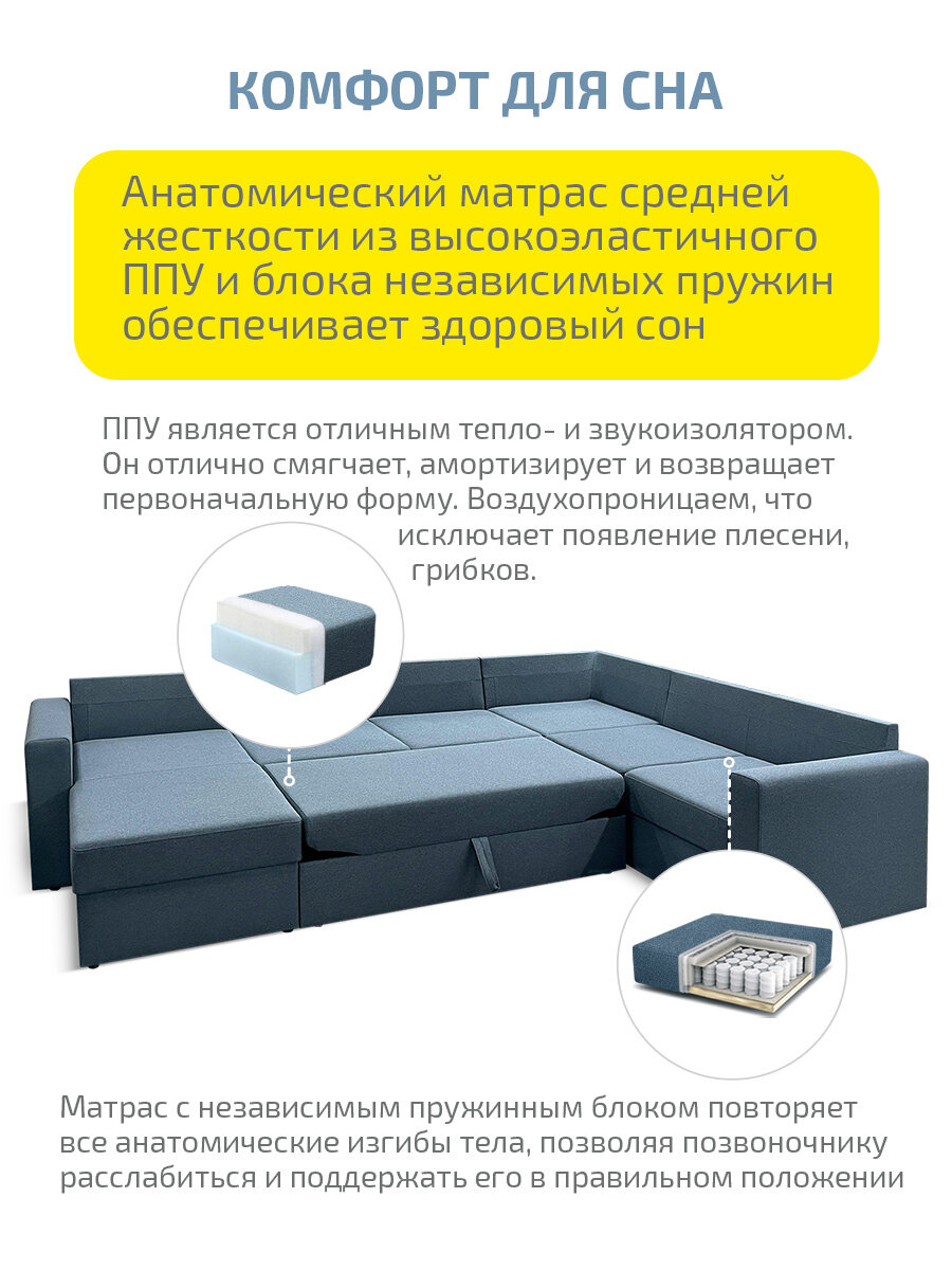 СохранитьДиван угловой раскладной П-образный Кольдинг, 304х235х85, механизм дельфин, синий рогожка интересное: