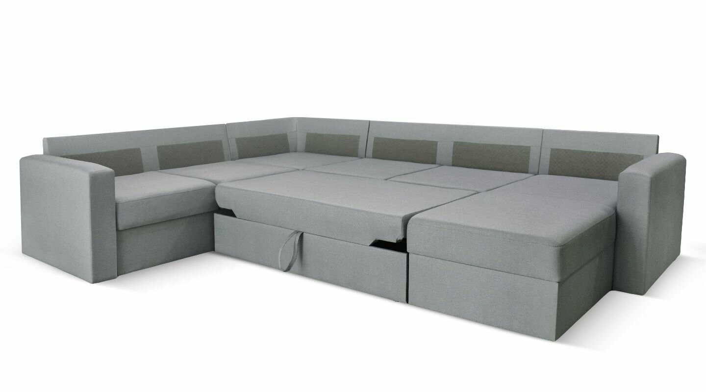 Диван угловой П-образный AH! DIVAN Кольдинг, 304х235х85, раскладной механизм дельфин, серый рогожка
