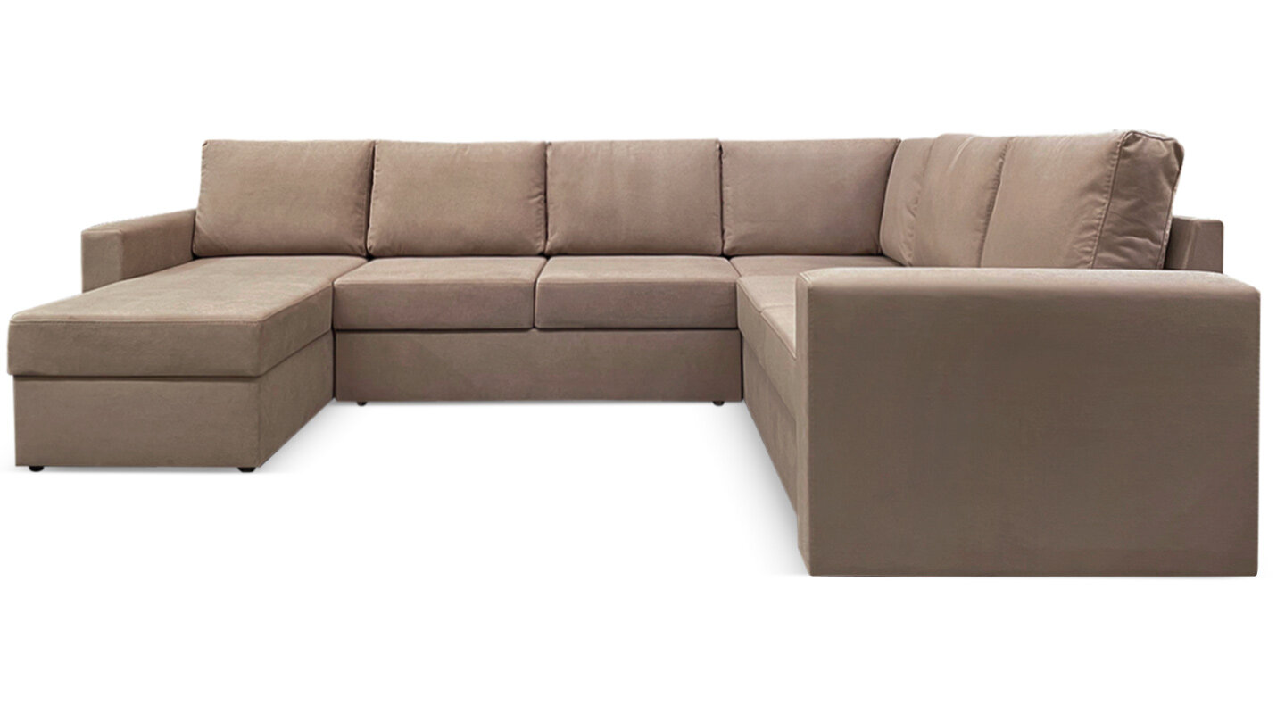 Диван угловой раскладной П-образный Кольдинг, 304х235х85, механизм дельфин, коричневый рогожка