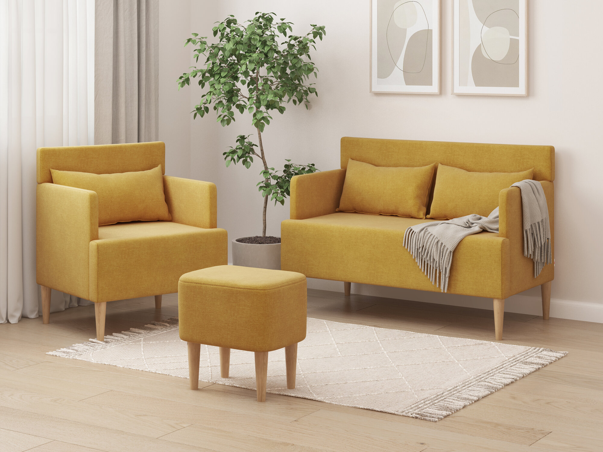Прямой диван MONOFIX киус, микровелюр желтый (№9), 113х60х80 (ДхГхВ)