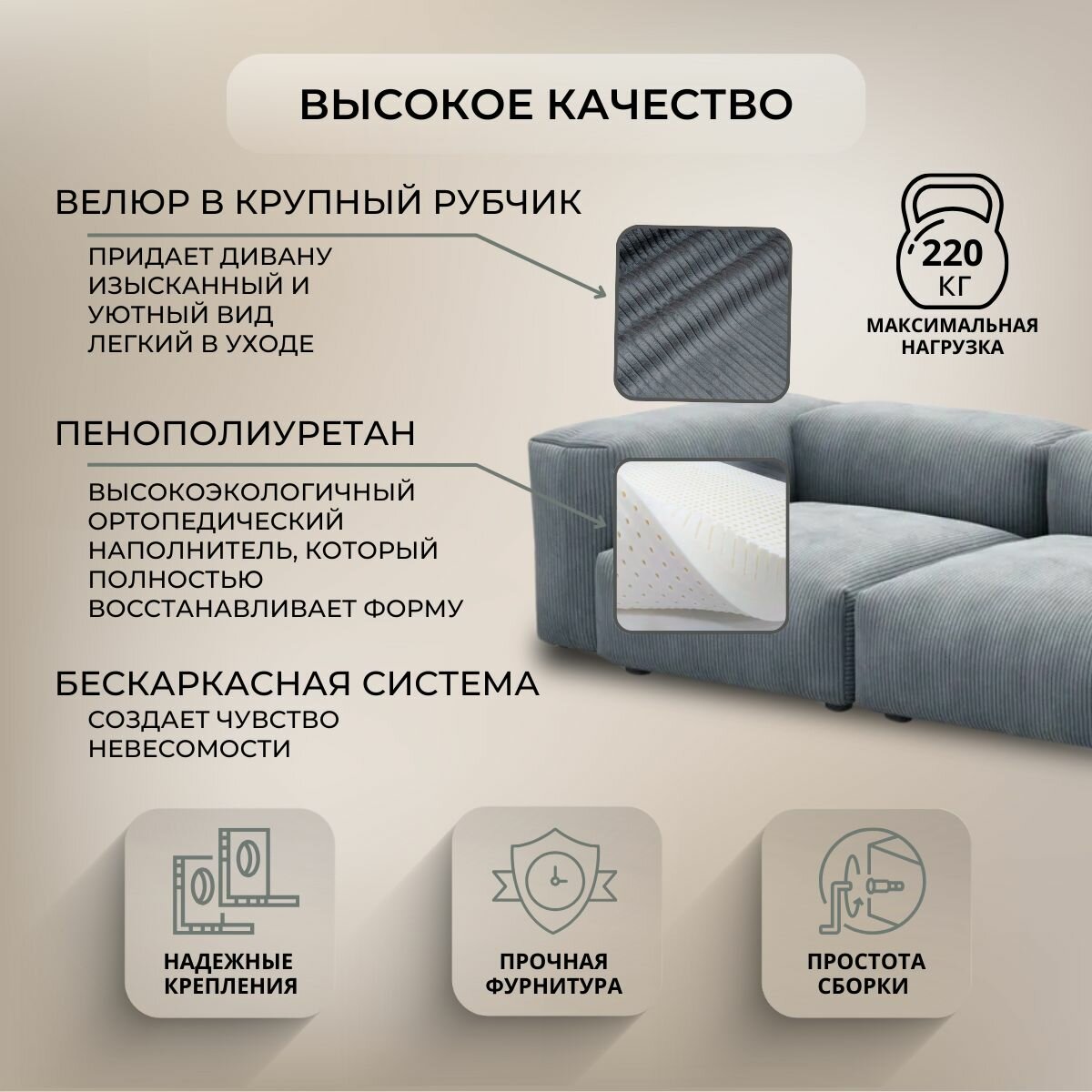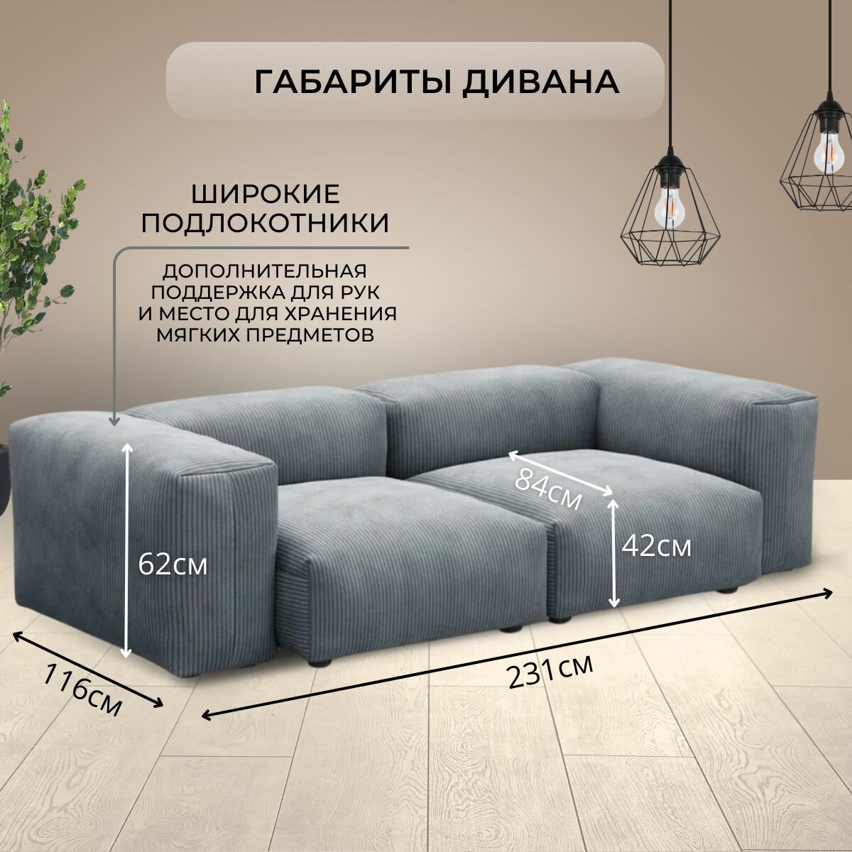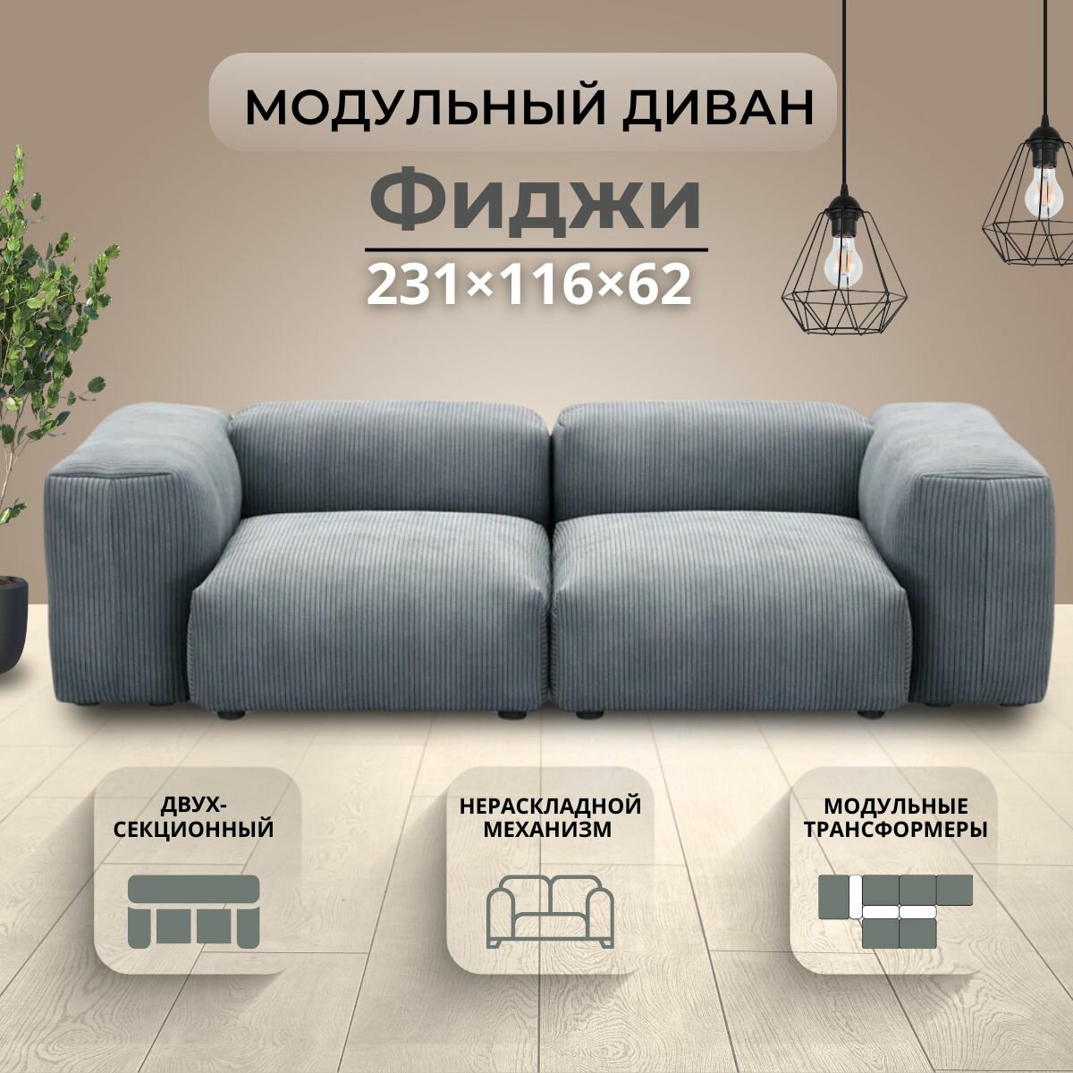 Диван Фиджи двухсекционный серый 231х116х62 интересное: