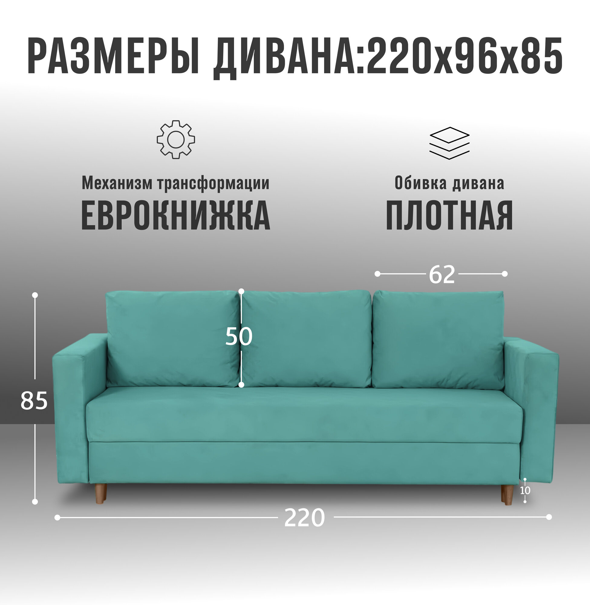СохранитьРаскладной диван кровать Ванкувер прямой, механизм еврокнижка, 220х96х85 см, бирюзовый, диванчик на ножках с ящиком для хранения интересное: