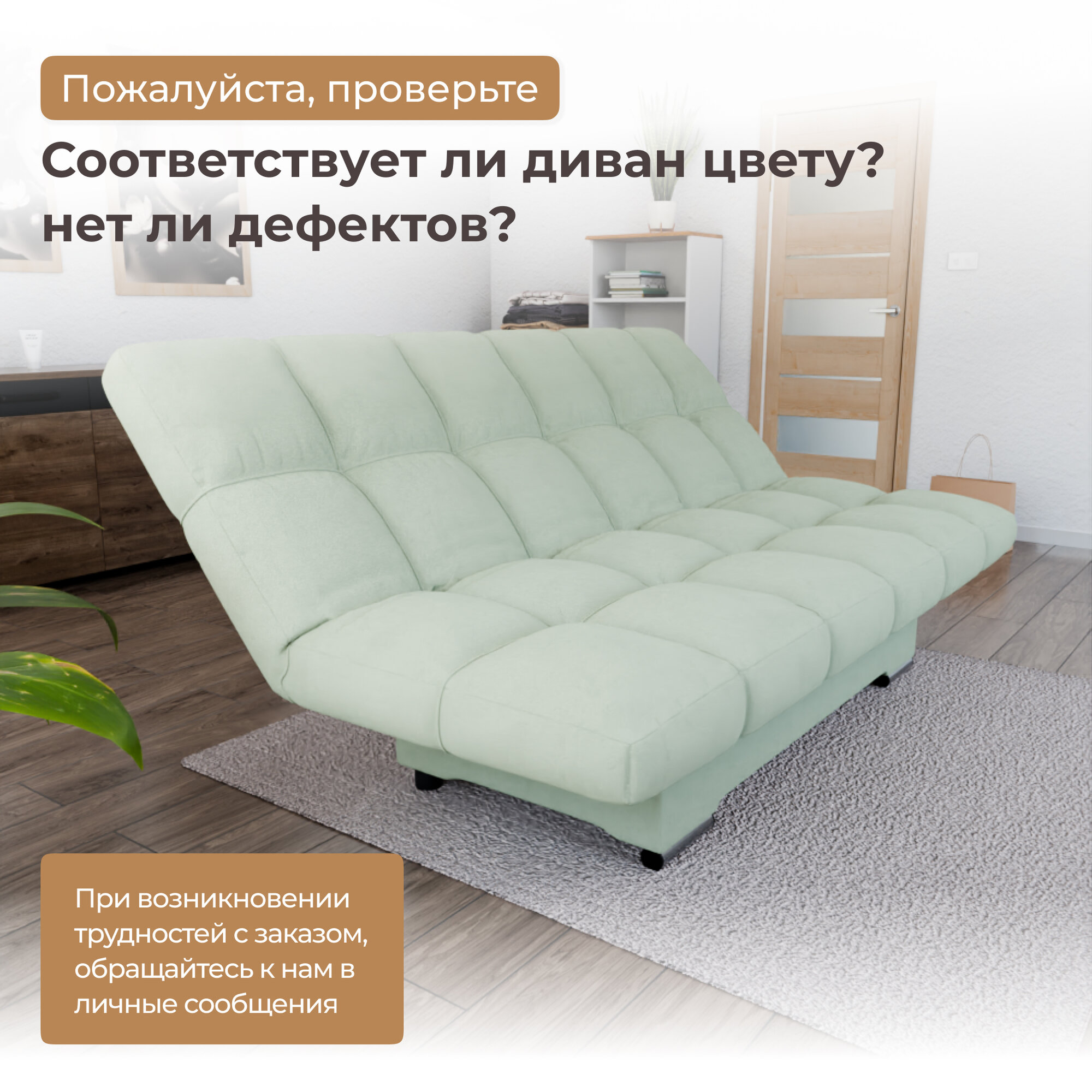 Диван-кровать "Klik-Klak" , YORCOM, Велютта люкс 14, размеры 175х100х100, Фисташковый