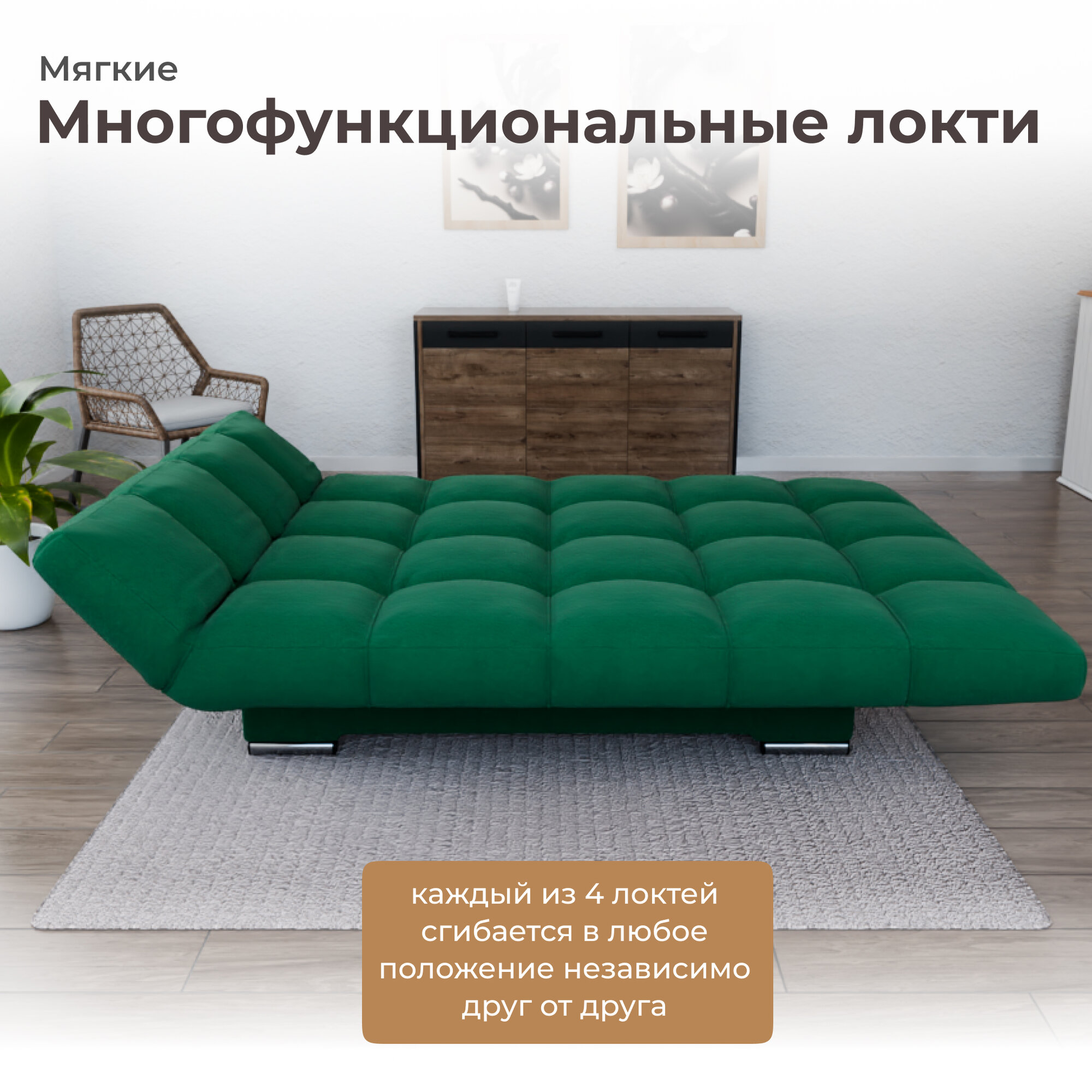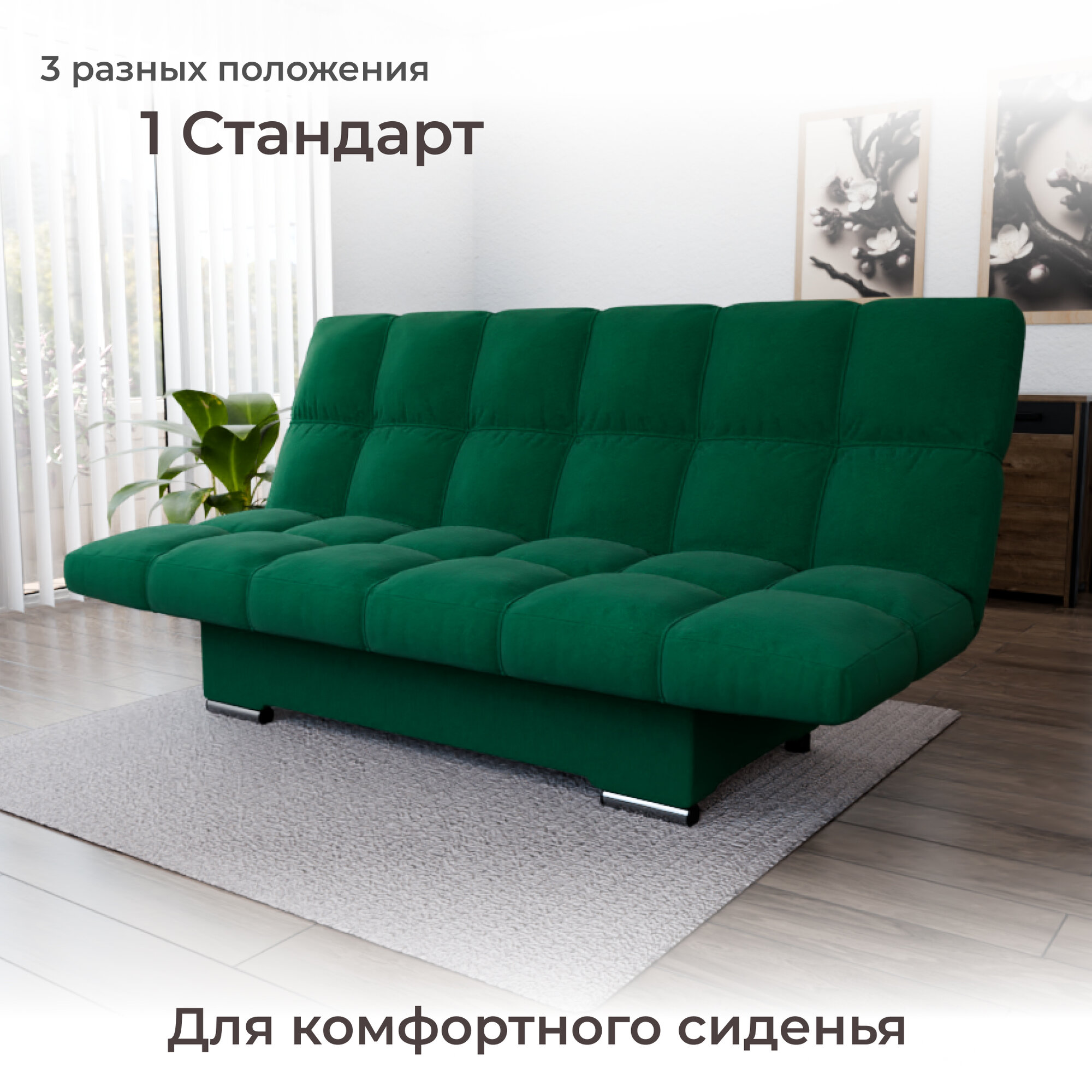 Диван-кровать "Klik-Klak" , YORCOM, Велютта люкс 42, размеры 175х100х100, Зеленый