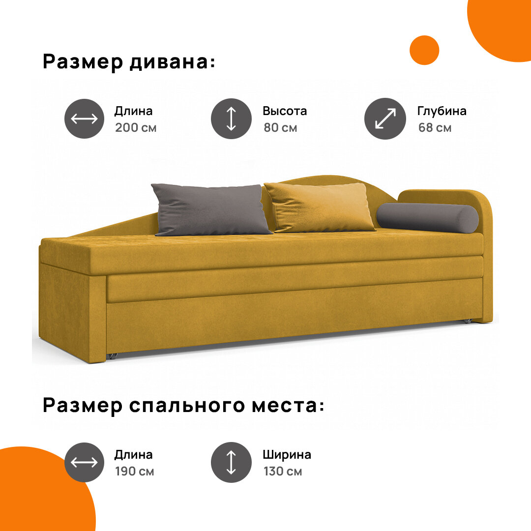 Диван-кушетка Гриф, правый, велюр, желтый, 200х73х80 см, MebelVia