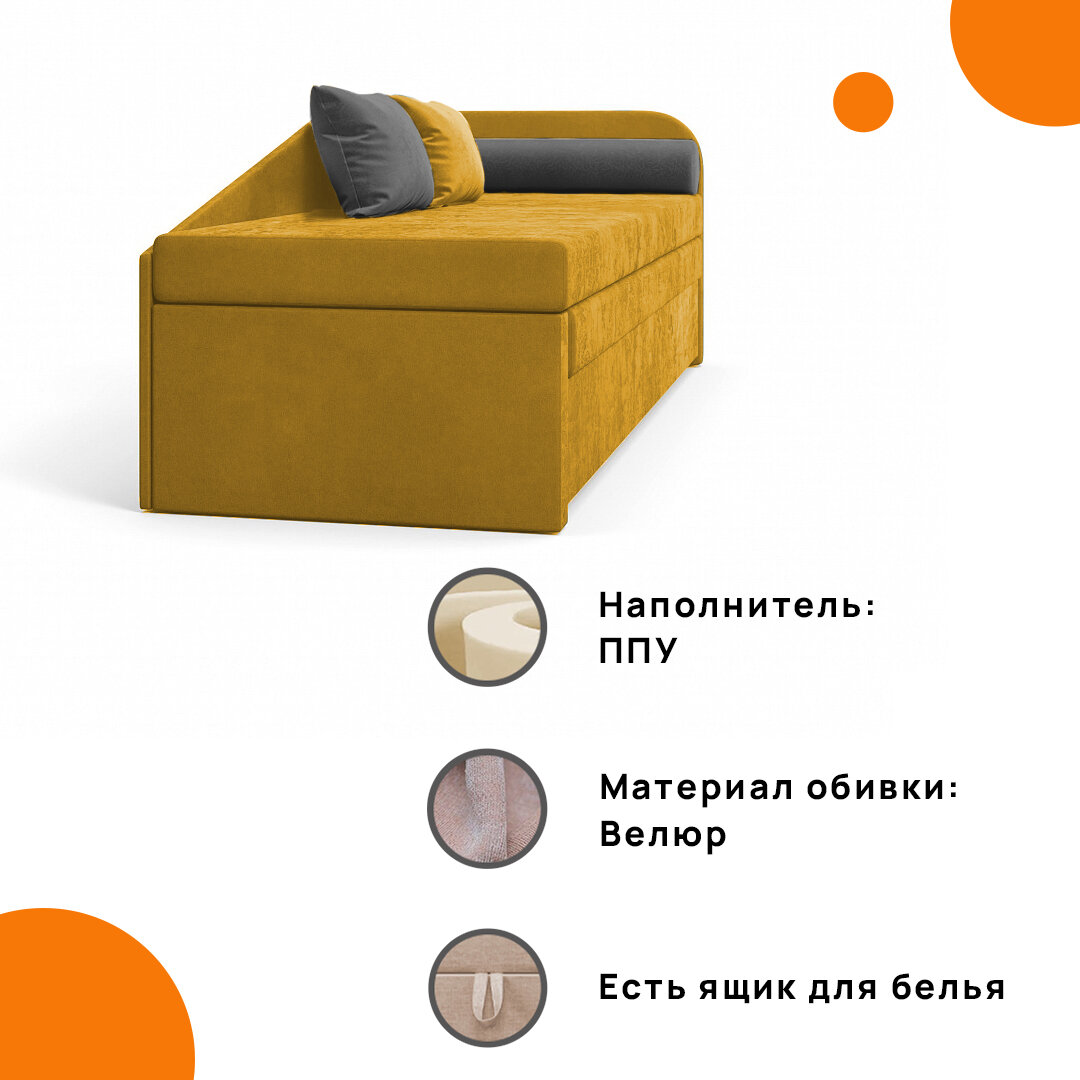 Диван-кушетка Гриф, левый, велюр, желтый, 200х73х80 см, MebelVia