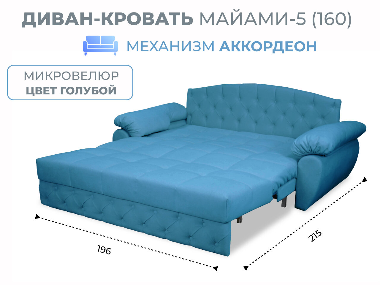 СохранитьДиван-кровать Майами-5 (160) механизм аккордеон микровелюр голубой Grand Family интересное: