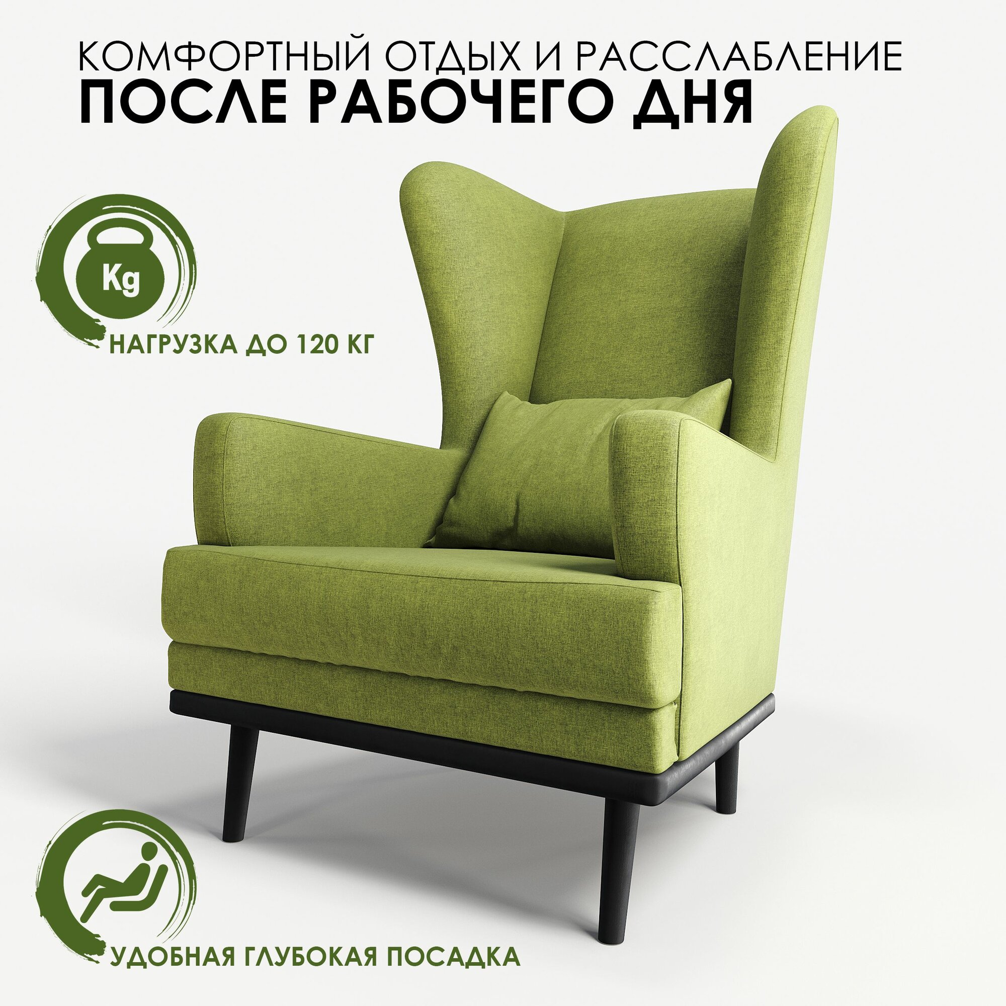 Купить Кресло мягкое с ушами Фантазёр D-7 (зеленый) на высоких ножках, для отдыха и чтения книг. В гостиную, балкон, спальню и переговорную комнату.
