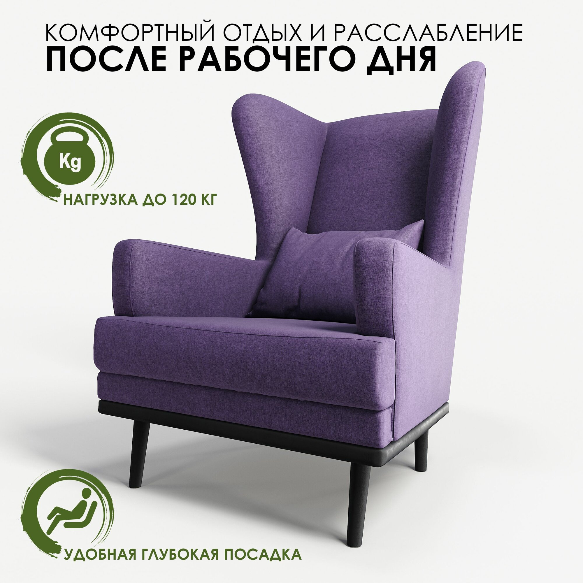 | Дополнительная информация | высокая полукруглая мягкая спинка с ушами, глубокая посадка под комфортным углом для отдыха, высокие ножки из массива бука |