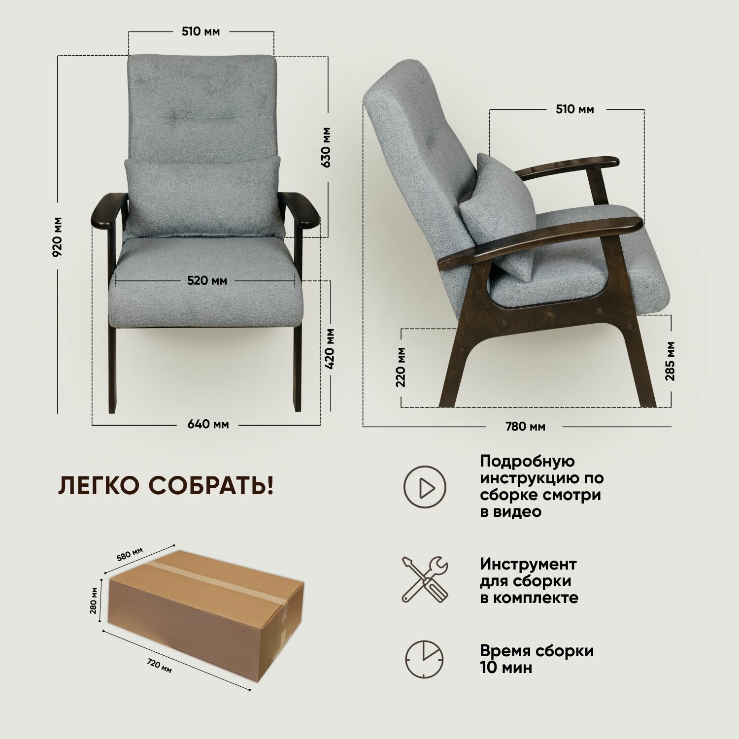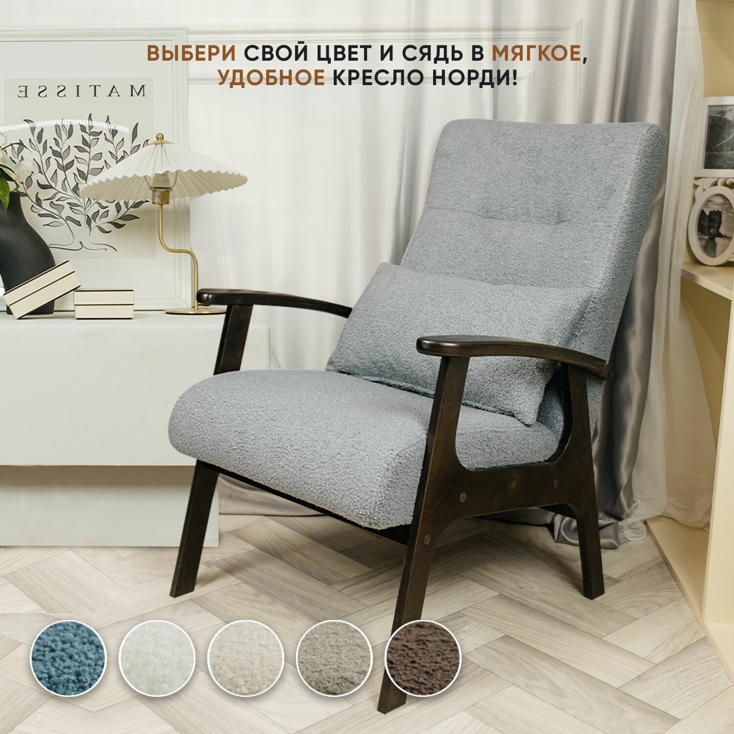 Кресло мягкое для отдыха дома LADY MAY Норди, 1 шт., 64х78х92 см, Букле интересное: